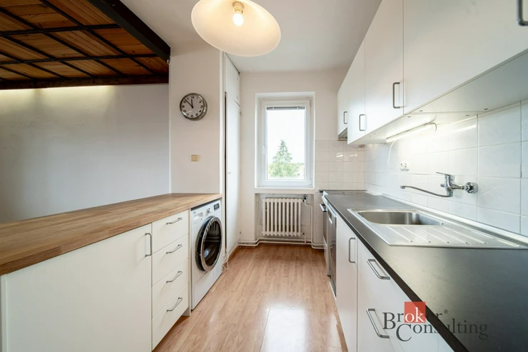 Byt je vybaven myčkou, sušičkou, pračkou a sporákem. V předsíni najdete vestavěnou skříň, v jednom z pokojů IKEA PAX, a před vstupními dveřmi navíc velkou úložnou skříň.