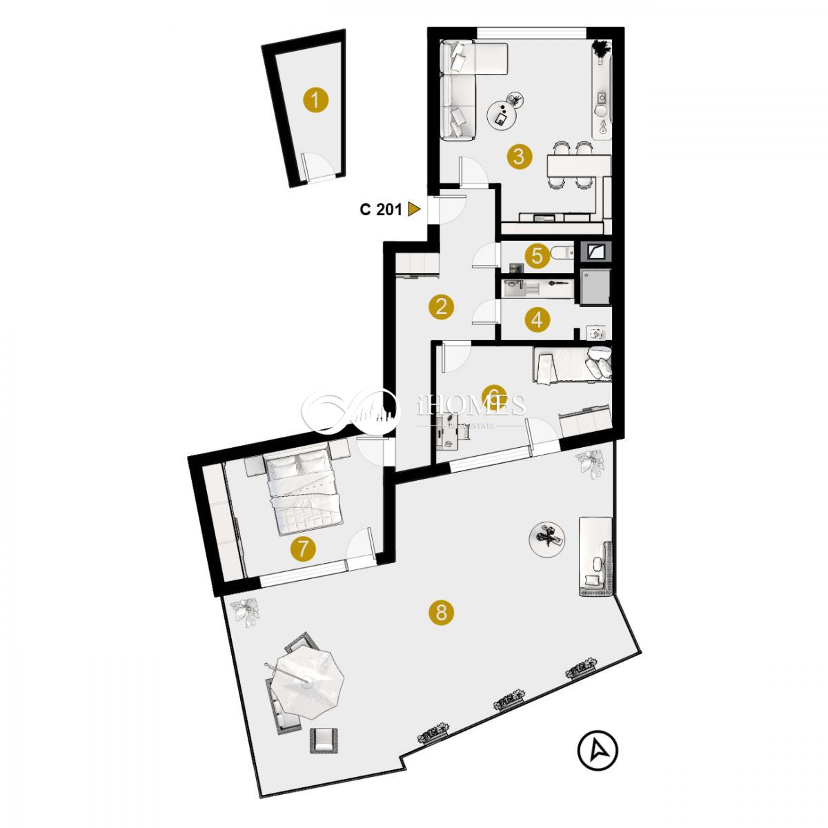iHomes Real Estate is offering for sale a 3-bedroom apartment with a total area of 79.4 m and sup2; + a 62.1 m and sup2; balcony and a 4.8 m and sup2; storage unit, located on the first floor.
