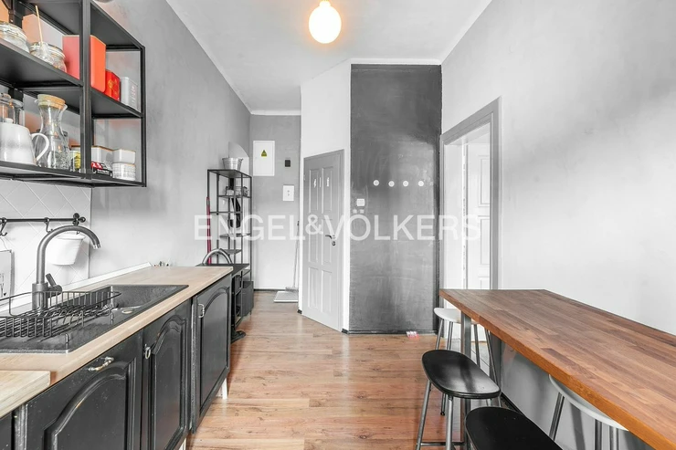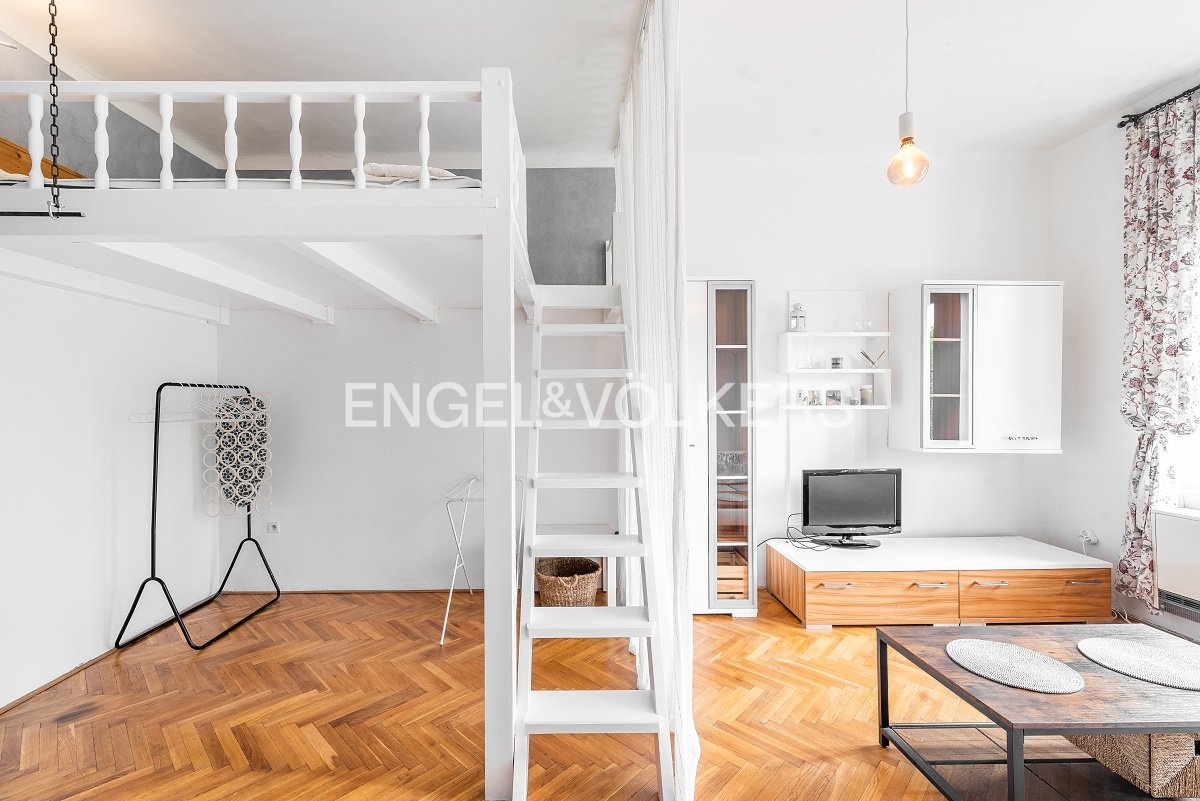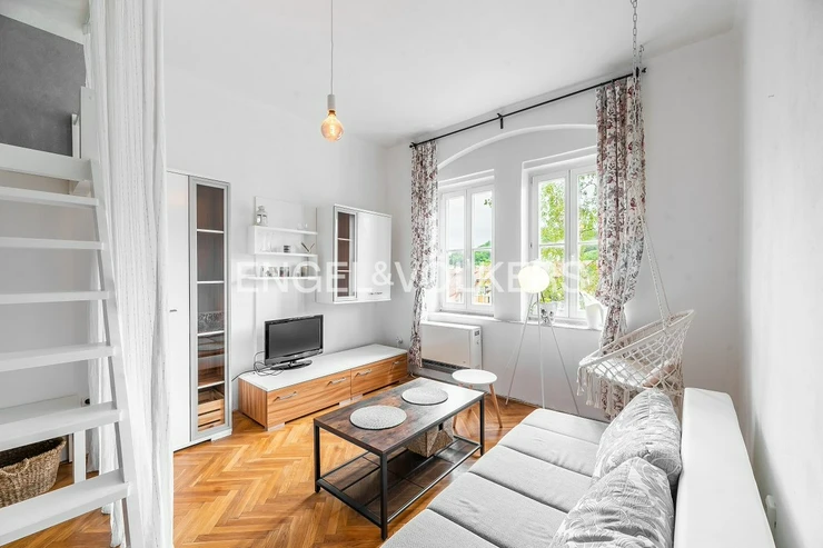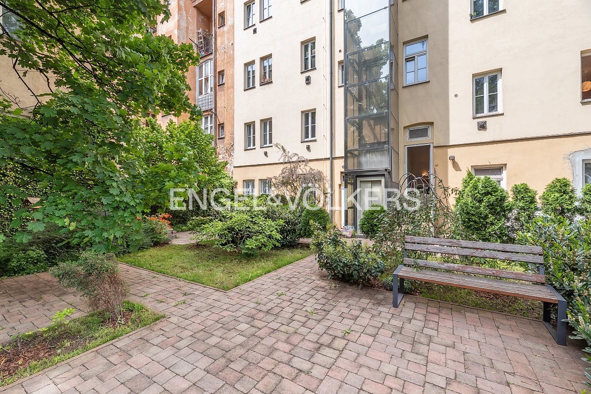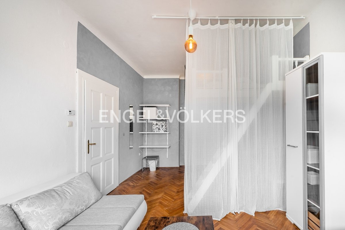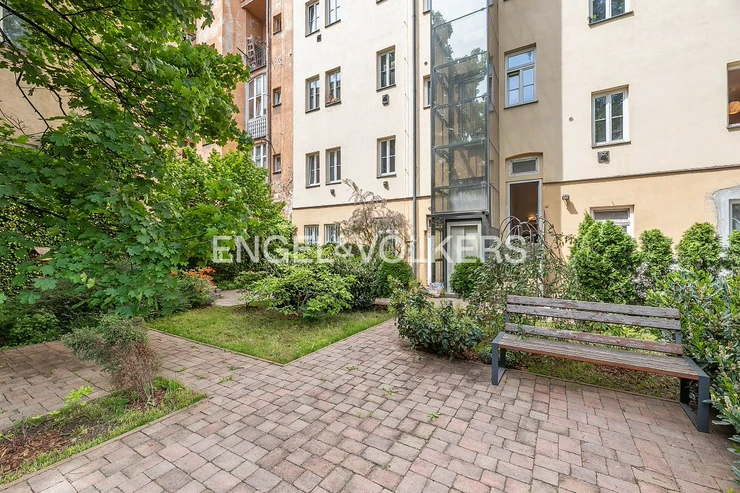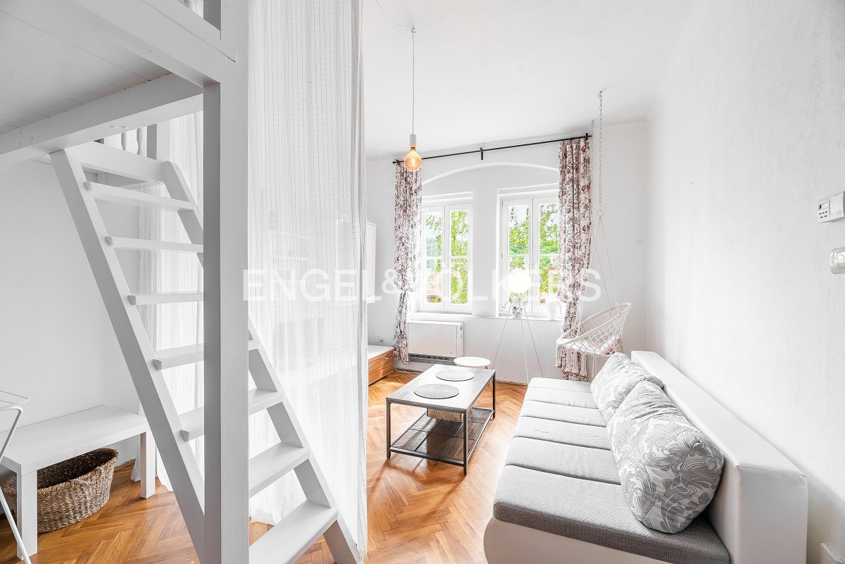 A bright 1+1 apartment with a floor area of 36 m² on the third floor of an apartment building with an elevator in the heart of Prague’s Smíchov district. The apartment faces south toward the courtyard, making it sunny and airy throughout the day. The building features a beautiful, well-maintained shared garden in the courtyard, offering a pleasant place to relax right in the city centre.