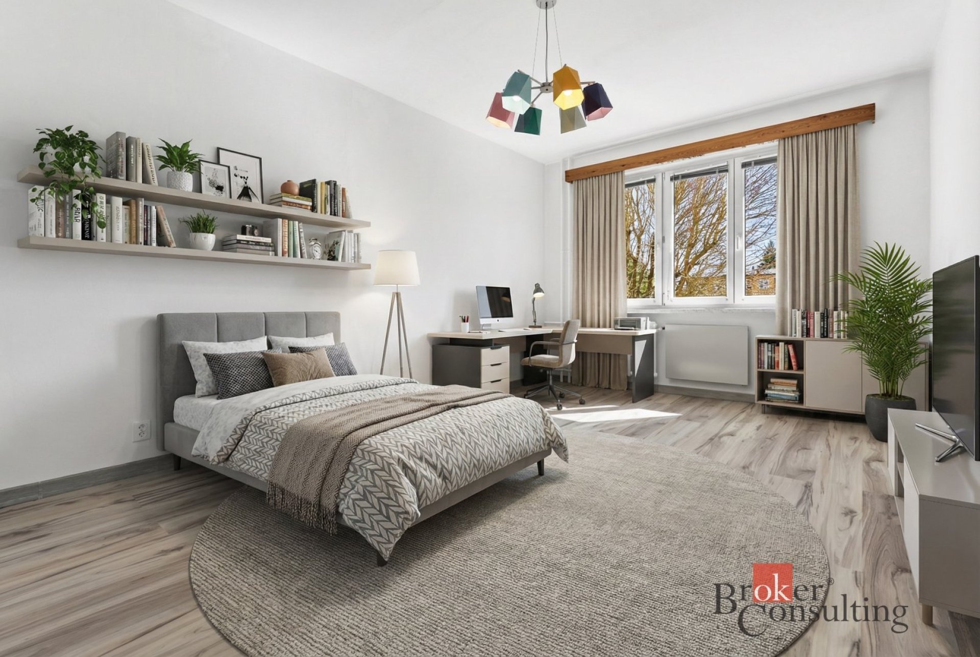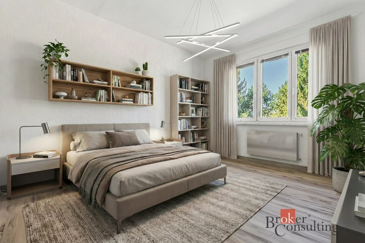 Byt je v udržovaném stavu – má plastová okna a zděné jádro. Kuchyň a obývací pokoj s lodžií jsou orientovány na jihovýchod s příjemným výhledem do parku. Další dva pokoje směřují do klidné jednosměrné ulice s výhledem do zeleně.