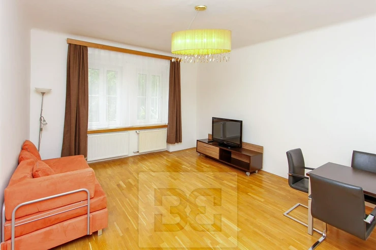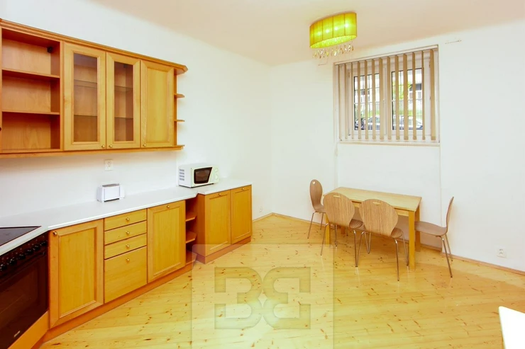 We exclusively offer for sale a spacious, fully furnished 1-bedroom apartment (2+1), located in a quiet and green part of historic Smíchov, within close proximity to Anděl and the Nový Smíchov shopping center.