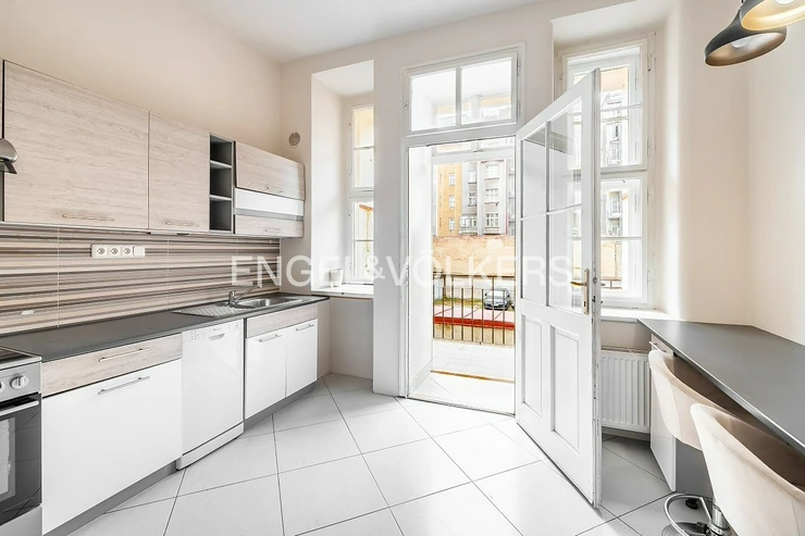 This spacious 3+1 apartment with a floor area of 105 m² is located on the elevated ground floor of a historic apartment building dating from 1920 in the prestigious and sought-after neighbourhood of Prague 6 – Bubeneč. Both the building and the apartment underwent a complete renovation in 2001, and the apartment underwent a partial renovation in 2022.
