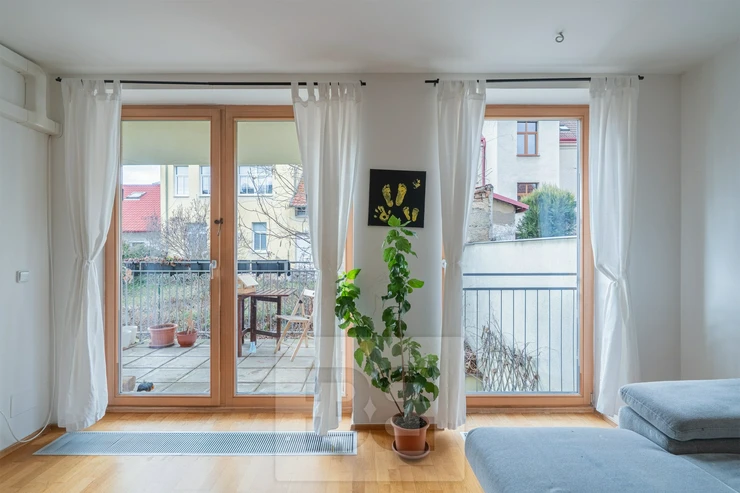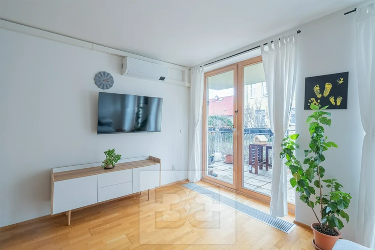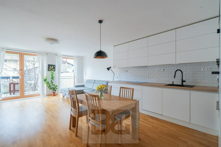 We offer for sale a spacious 2-bedroom apartment with a living room and kitchenette (3+kk layout) with a total area of 70.64 m², located on the 2nd floor of a well-maintained and insulated building from 2008. The building is very quiet, with only 7 residential units. Thanks to its position on a gentle slope, the apartment is peaceful and shielded from noise coming from the main Zenklova street.
