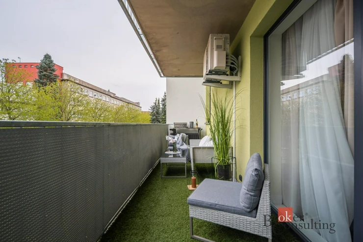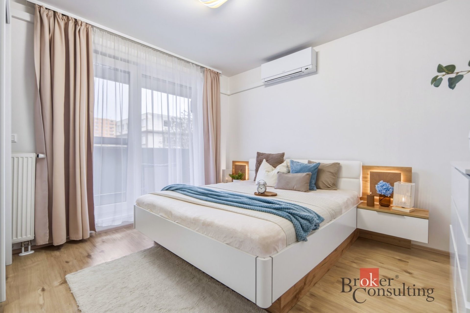 Velkým benefitem je klimatizace v obou hlavních místnostech s možností ovládání na dálku, díky které si nastavíte ideální teplotu ještě před příchodem domů. Byt je dále vybaven novými dálkově odečitatelnými měřáky energií.