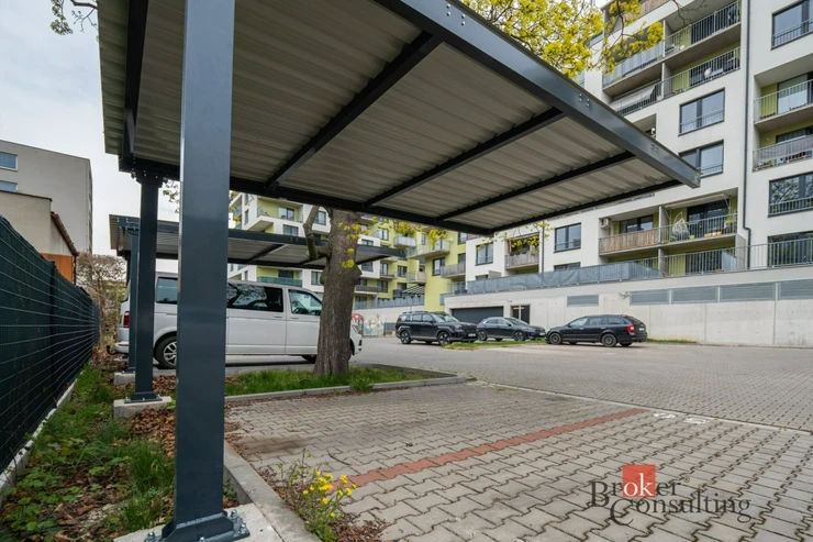 K bytu je možné dokoupit zastřešené parkovací stání za cenu 400.000 Kč.