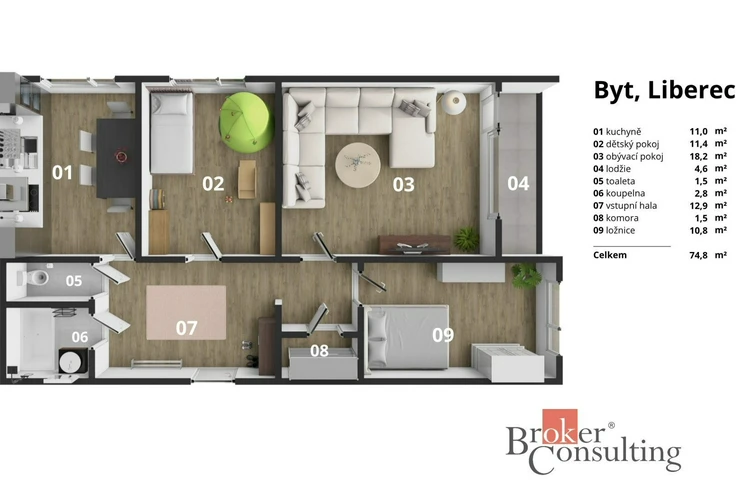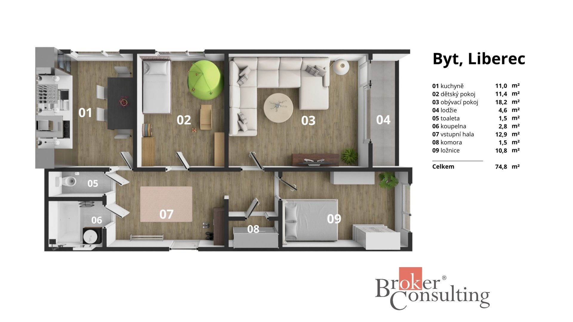 Nabízíme k prodeji bytovou jednotku 3+1 o celkové výměře 74,7 m² (včetně lodžie) v ulici Halasova na libereckém sídlišti Rochlice. Byt se nachází ve 4. patře panelového domu a je v původním stavu, což z něj dělá ideální objekt pro kompletní rekonstrukci podle vašich představ. Hlavní předností tohoto bytu není výhled, ale jeho vnitřní prostor a praktické uspořádání, které po modernizaci nabídne velmi komfortní rodinné zázemí.