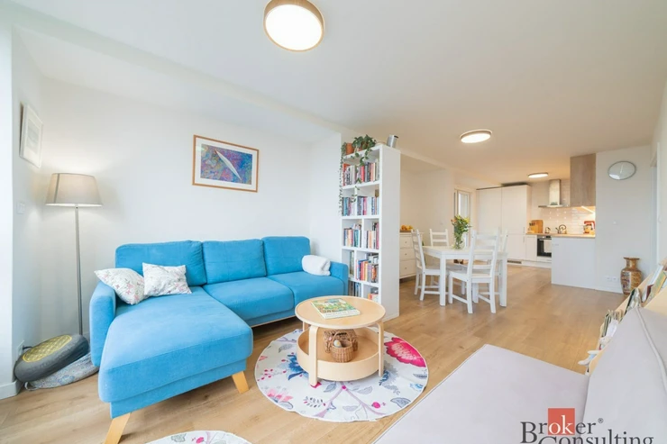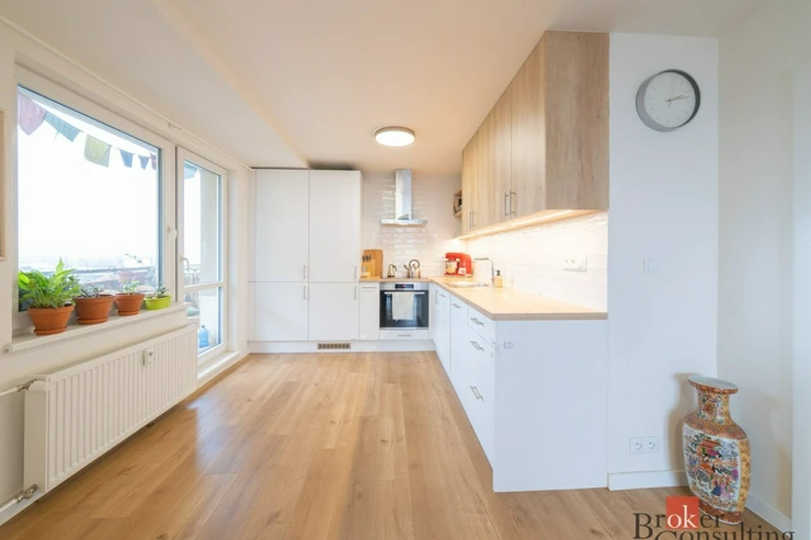 At first glance, the apartment will impress you with its airiness and plenty of natural light. The dominant feature is the spacious living room with a kitchenette, which is an ideal place for family life and meetings with friends. A great advantage is the possibility of simple modification to a 4+kk layout, which will be appreciated especially by families or those looking for flexibility in the future.