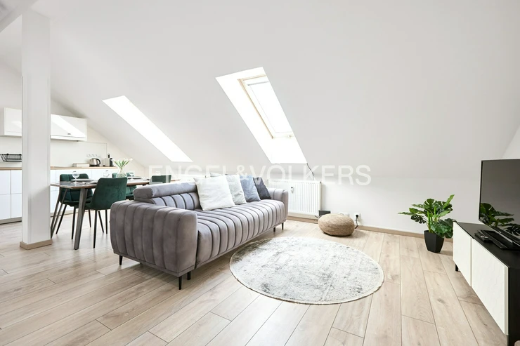 A stylish 31 sqm 1+kt apartment after a complete renovation is located on the 3rd floor of a building with an elevator to the mezzanine. It offers modern, fully equipped living without the need for further investment.