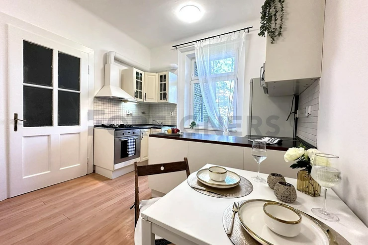 The last major renovation took place 8 years ago, and the apartment has recently undergone light cosmetic updates (wall repairs and repainting, new silicone in the bathroom, skirting boards, and light fixtures + deep cleaning). The property is in very good technical condition and ready for immediate occupancy without the need for further investment. The floors feature well-maintained wooden parquet, and heating is provided by a new gas boiler. The kitchen is older but fully functional.