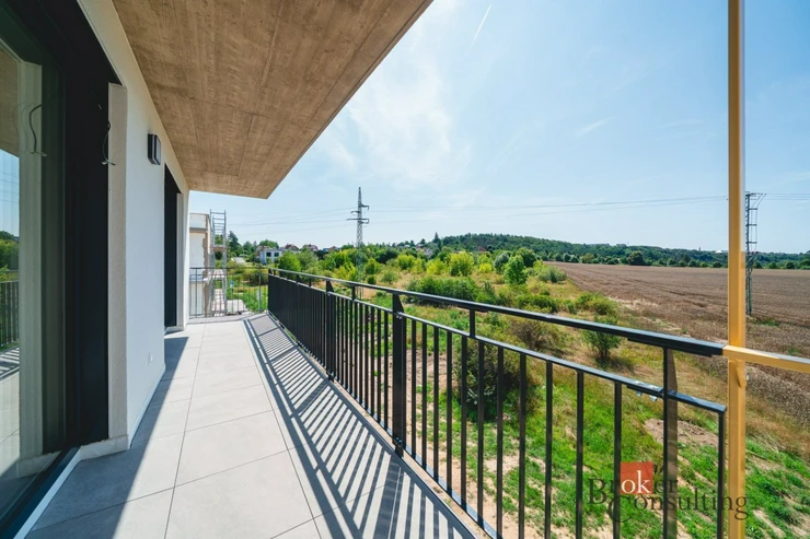 Byt je velmi světlý, prakticky řešený a nabízí nádherný výhled do dáli mimo veškerou zástavbu s jižní orientací. Byt je zcela nový a chviličku po kolaudaci. V celém bytě je podlahové topení, příprava na předokenní žaluzie a klimatizaci.