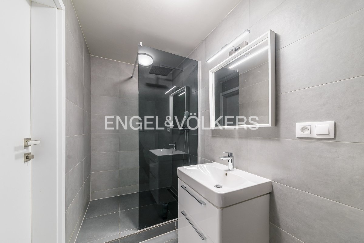 The 2+kt apartment offers an entrance hall, a living room with a kitchenette and access to a spacious loggia, a spacious bedroom, and a bathroom with a shower. The apartment is bright and airy thanks to its location on a high floor.