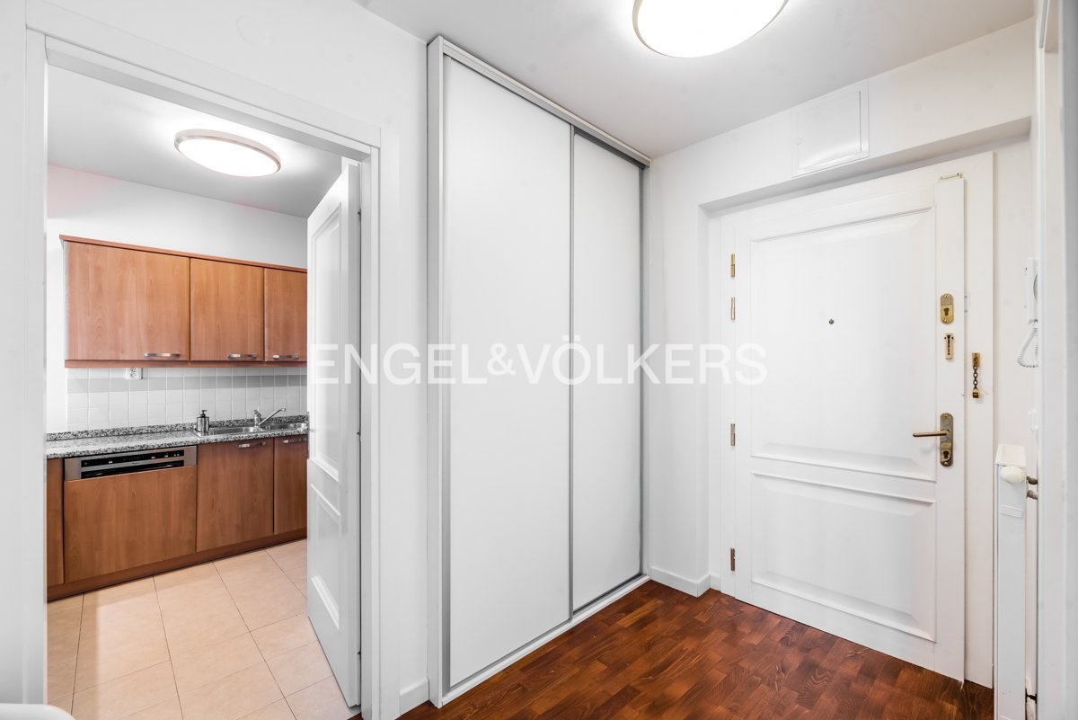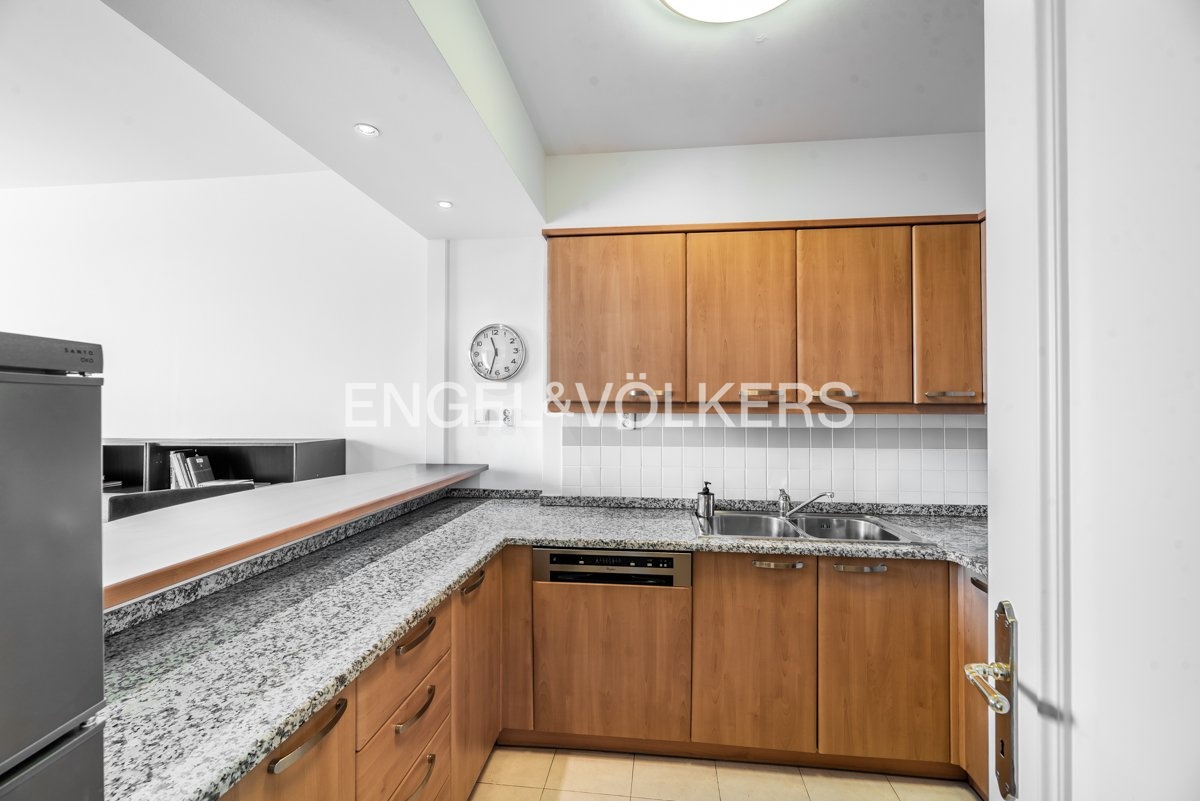 The apartment also includes a storage unit in the basement and a private parking space in the underground garage, which is accessible only to residents. The apartment is currently rented.