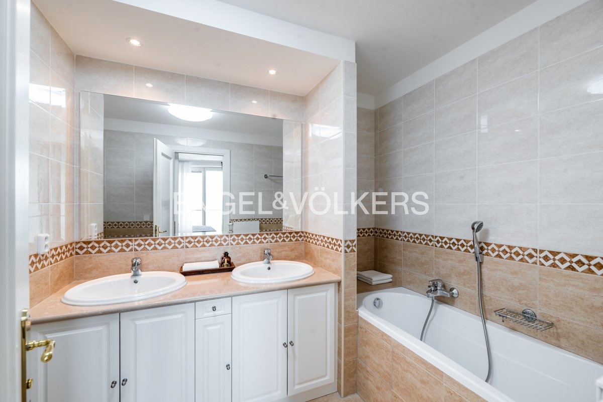 The interior is brightened by large windows, and heating is provided by a central system.