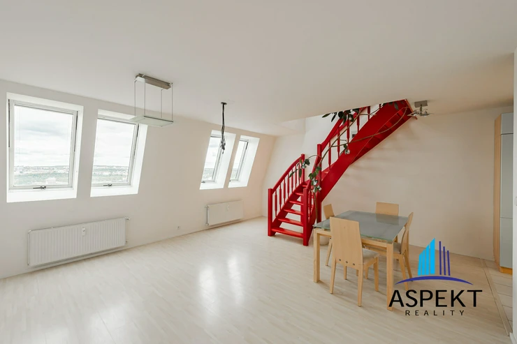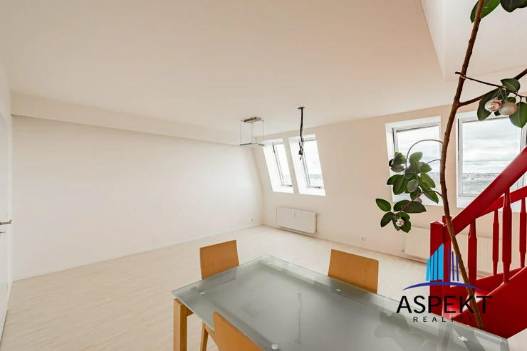 We offer for sale a spacious duplex apartment 4+kk with an area of 94.1 m2 located on Nad Ohradou street, Prague 3 - Žižkov. The apartment unit in a building with an elevator is situated on the 4th and 5th floors of a loft extension of a panel apartment building and provides beautiful views of Prague.