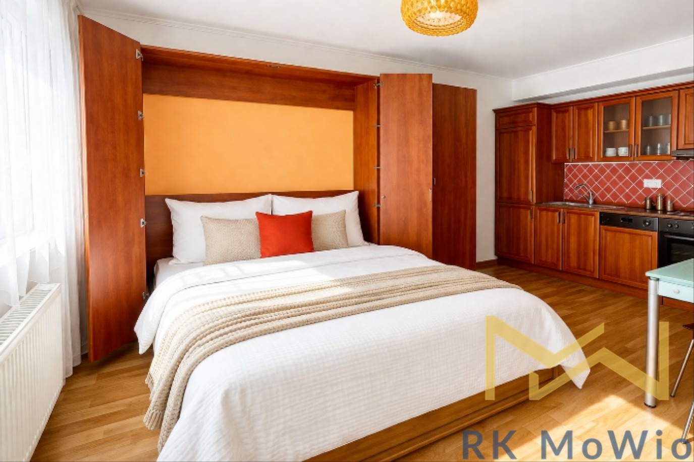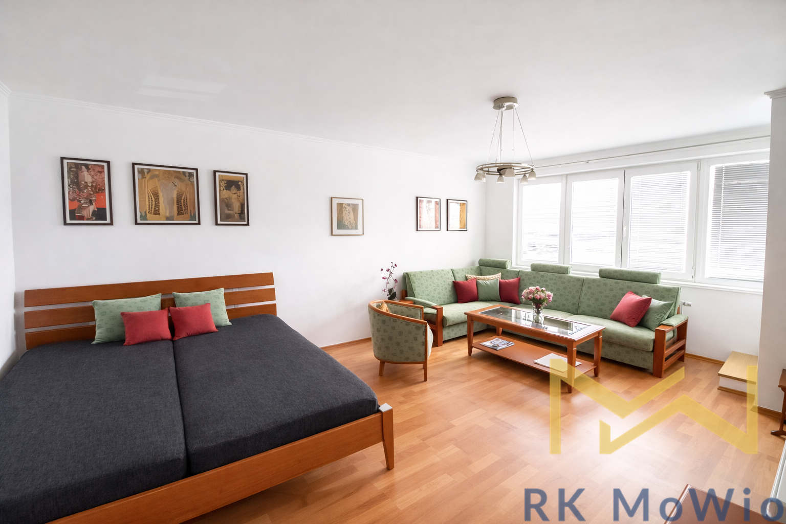 In this location, we offer for sale an air-conditioned 1-bedroom apartment (1+1) with a usable area of 52 sqm and a terrace of 10 sqm, situated in a barrier-free building with a lift. The layout is practically designed and includes an entrance hall providing access to the living room, bathroom, and storage room. The main living area feels bright and spacious and allows for flexible arrangement – it can easily be divided into a living and sleeping zone. The living room is connected to a separate kitchen, which offers ample space for a dining area and features a built-in wardrobe with an integrated fold-down bed, enhancing the functionality of the space. From the kitchen, there is direct access to a spacious terrace with views of the greenery of Central Park Stodůlky and the Nepomucký pond. The terrace represents a significant benefit of the apartment and provides a pleasant space for relaxation.