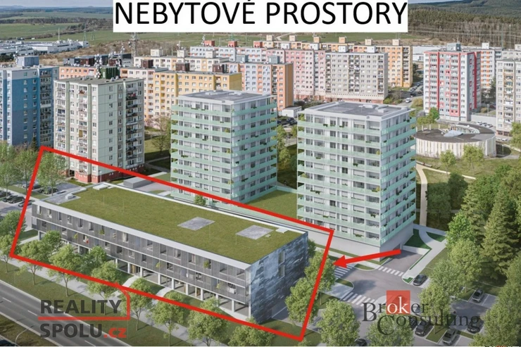 V projektu Byty Krašovská nabízíme k prodeji 8 nebytových prostorů v nižší budově označené jako B, kde má většina prostor výlohu směrem na hlavní třídu, ul. Studentská.