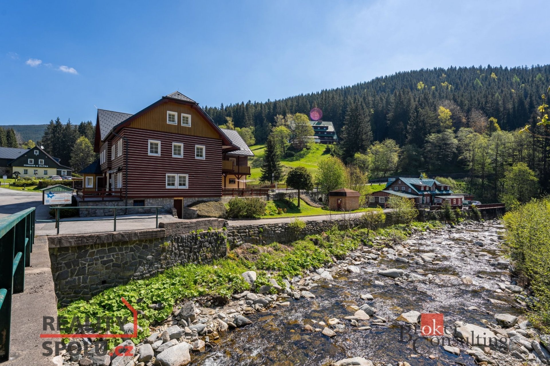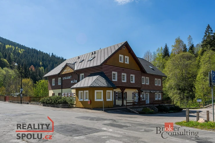 Nabízíme k prodeji prostorný horský penzion Spálený Mlýn v malebné obci Malá Úpa, jen pár minut od sjezdovek, na křižovatce turistických tras v samém srdci Krkonoš.