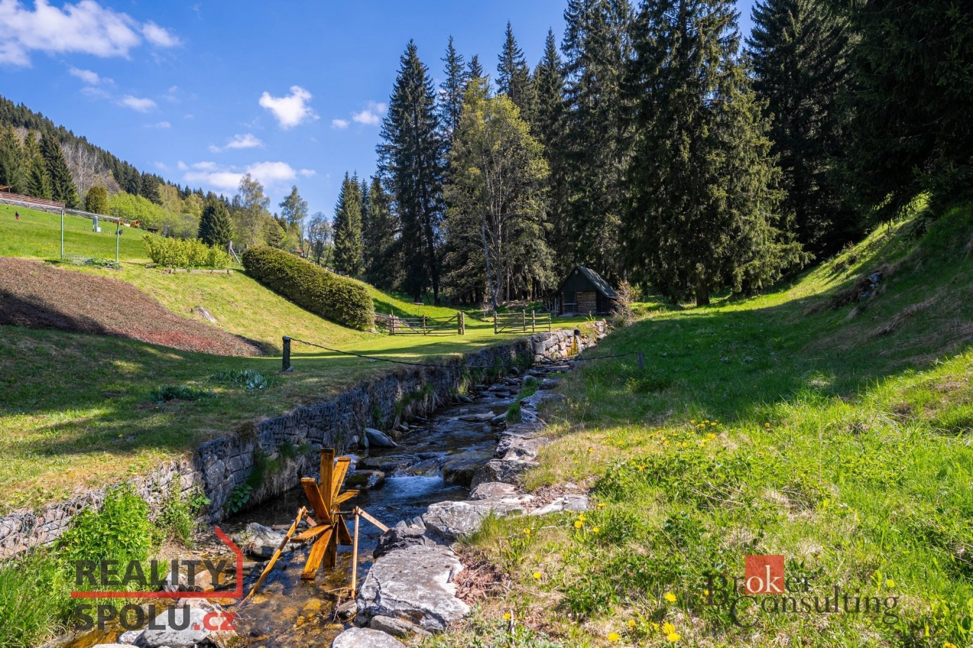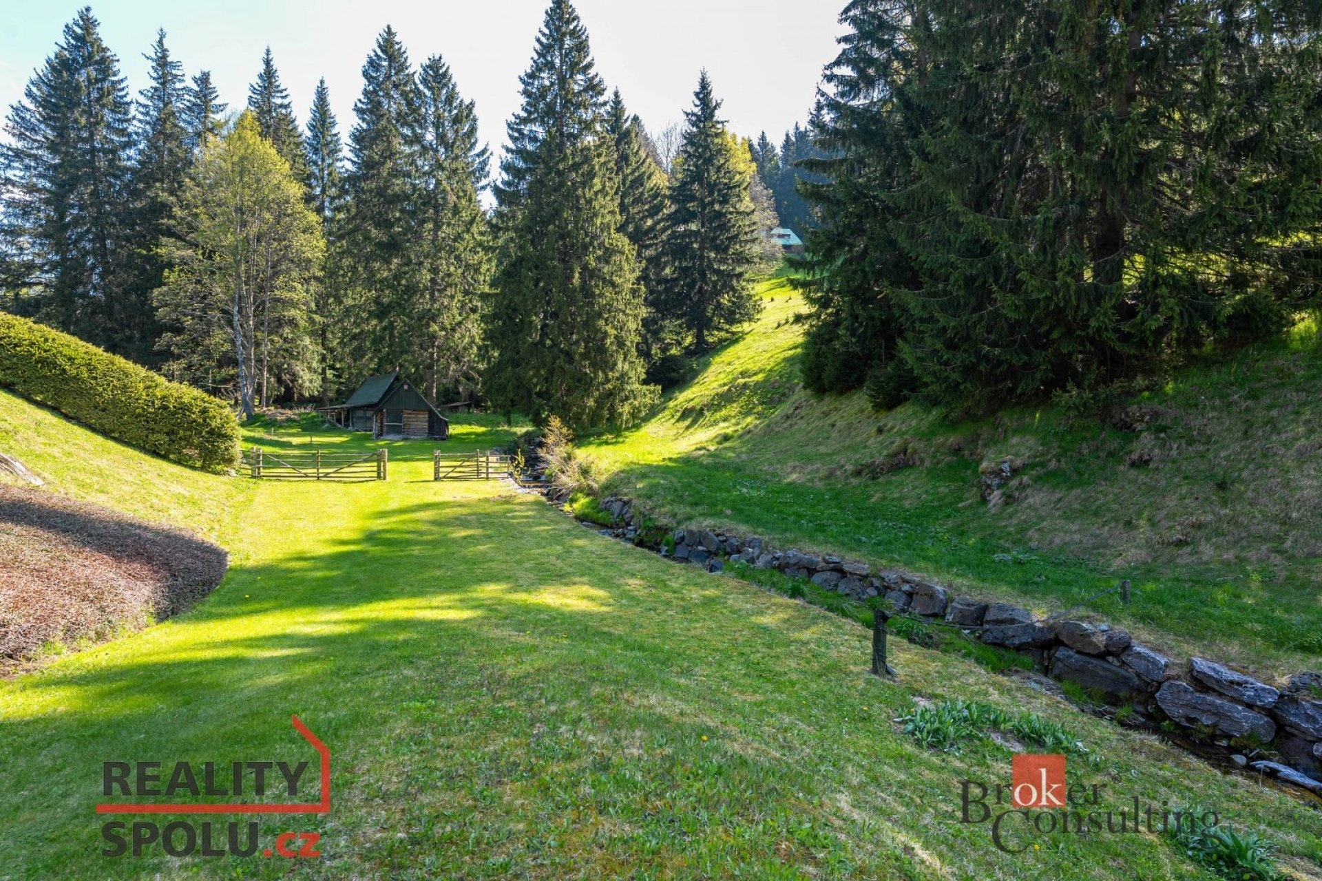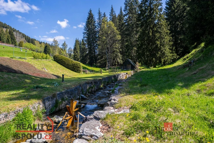 K penzionu s malebným zákoutím u potoka, které vytváří jedinečnou atmosféru, náleží také rozlehlý pozemek o velikosti 19641 m².