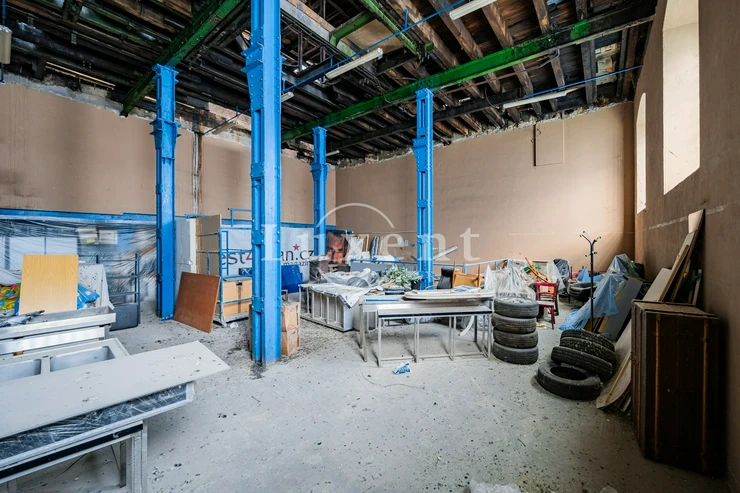 The commercial building is currently in a pre-renovation state and retains its industrial character. In its current state, the premises can be used for production, storage, or office operations. Offices make up 197 m² of the total area, and there are also storage spaces in the building on the 1st floor with an area of 267 m² and on the 2nd floor with 472 m².