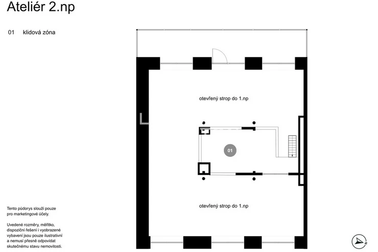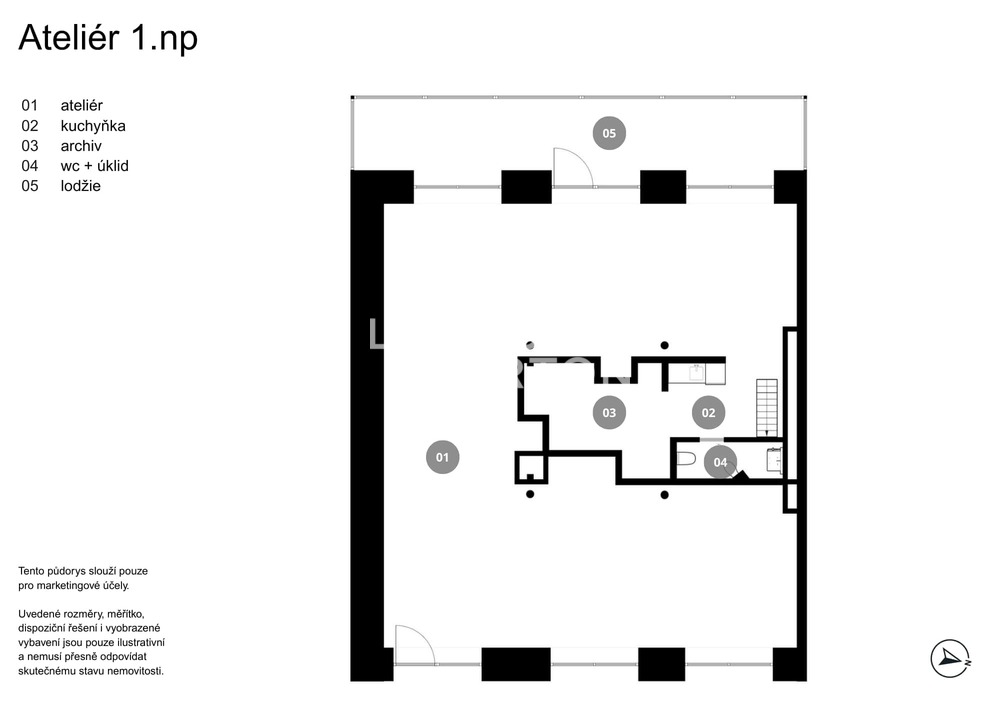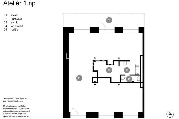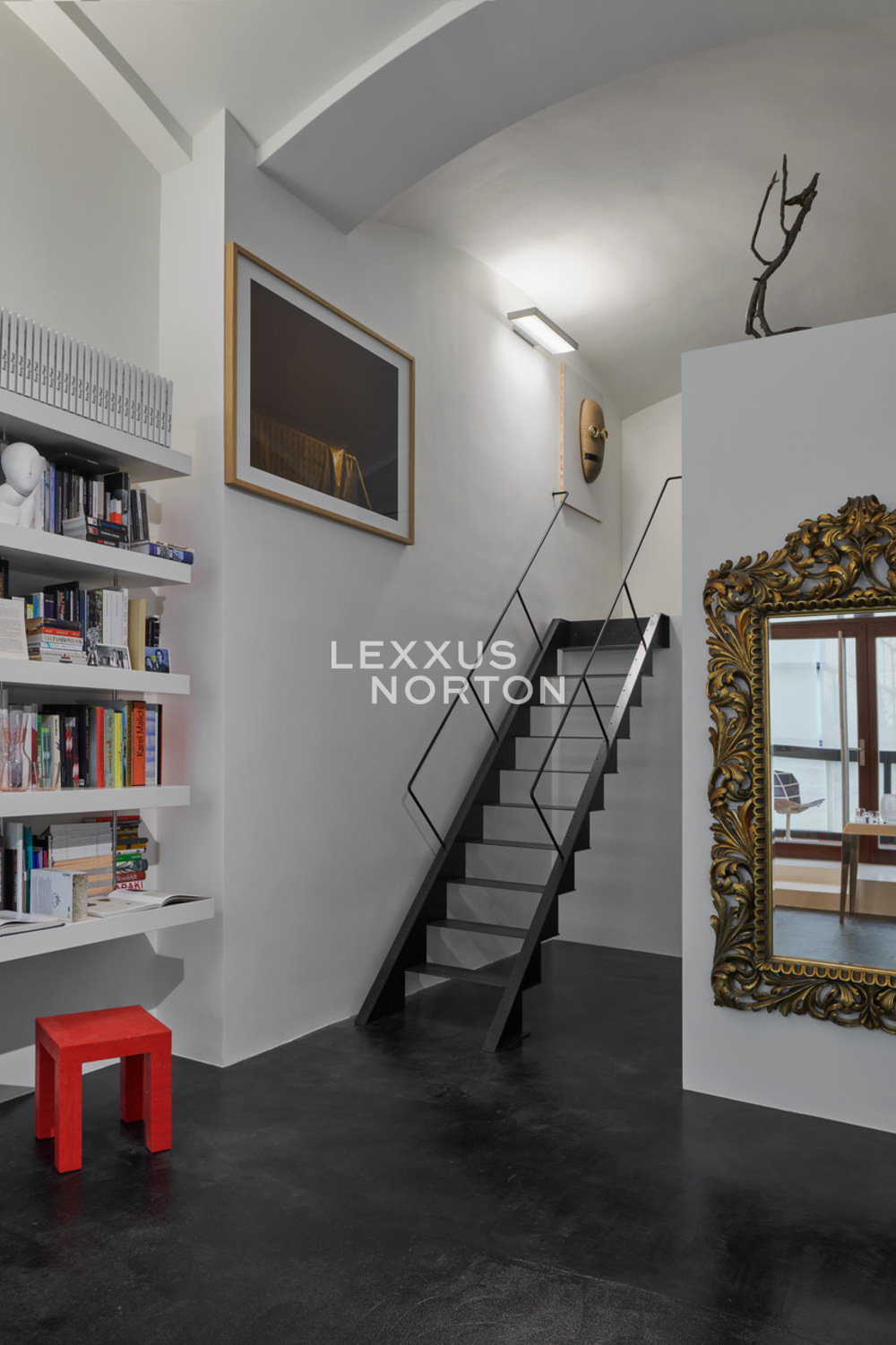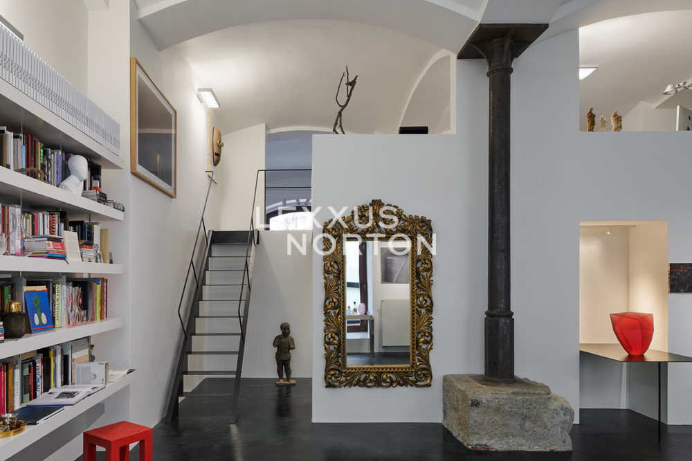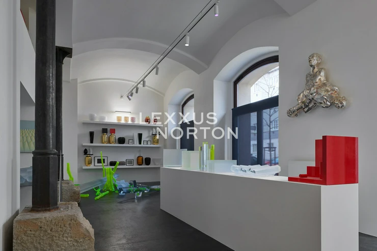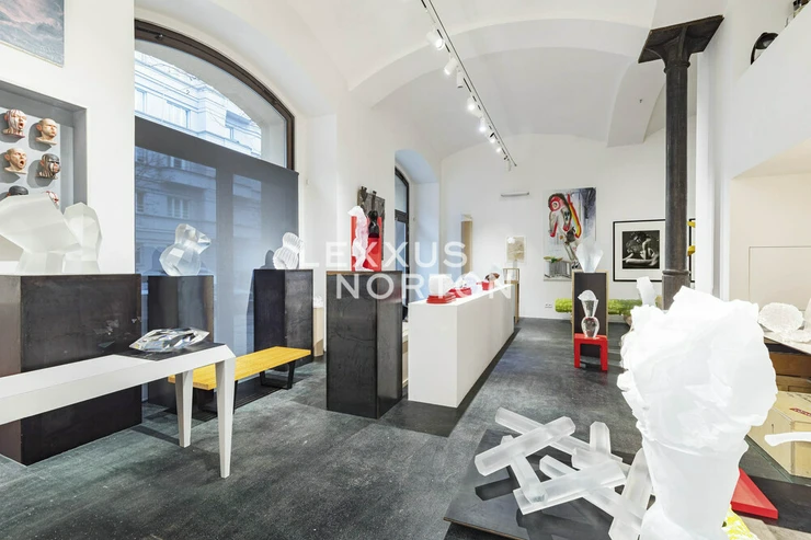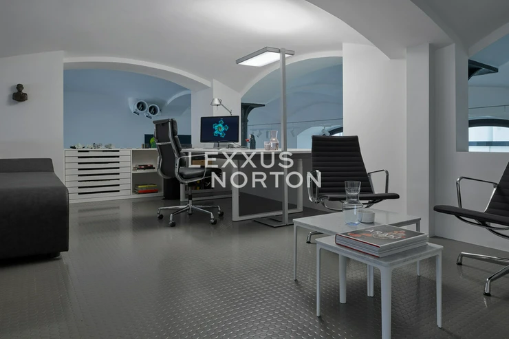 We are offering an exceptional atelier of over 200 sqm with a ceiling height exceeding 4.5 metres, located on the ground floor of the iconic Cornlofts Saldova project. The space was created by converting an original 19th-century granary, whose industrial character has been preserved in the cast-iron columns, arches, and generous layout.The current form of the atelier is the work of renowned architect Josef Pleskot, who designed it specifically for designer and artist Rony Plesl. The architect infused the space with a clear structure, light, and the potential for outstanding presentation.At the centre of the atelier stands a built-in structure that practically divides the interior. The upper floor offers a quiet and private place for work or relaxation, while the ground floor provides practical facilities — a kitchenette, storage, and a bathroom.The atelier also includes a 23 sqm loggia facing a peaceful courtyard, where a unique green corner has been created, complete with an outdoor kitchen and seating area for moments of relaxation. The sale includes a garage parking space and a shared residents’ garden.The space feels elegant and timeless thanks to its white vaulted ceilings and walls. Its character is further enhanced by a concrete floor with a subtle marbled effect, adding personality and a professional aesthetic. Lighting is provided by a high-quality iGuzzini linear system suspended on cables, preserving the purity of the historic vaults while delivering ideal illumination conditions.The interior is accentuated by custom steel elements, such as columns, the staircase, and designer pieces by Vitra. Thanks to its size, height, and layout, the space is perfectly suited not only as an atelier or gallery, but also as a representative office, boutique, design showroom, luxury retail unit, or an intimate café. The outdoor kitchenette and bespoke cedar table make the loggia an ideal place for client meetings, presentations, or comfortable team gatherings.With its flexibility, excellent light, and professional execution, this space offers a wide range of potential uses and is ready to become a strong, representative setting for any premium concept.The space is situated on the ground floor of the Cornlofts Saldova development in one of Prague’s most dynamic districts — Karlín. This area blends its industrial heritage with modern urban living and offers a peaceful environment just steps away from Forum Karlín, renowned restaurants, cafés, galleries, and design studios.Excellent accessibility is ensured by the nearby Křižíkova metro station, tram lines, and quick connections to the city centre. Karlín attracts a creative community, professionals, and an international clientele, making it an ideal location for a showroom, boutique, office, atelier, or any other representative establishment.