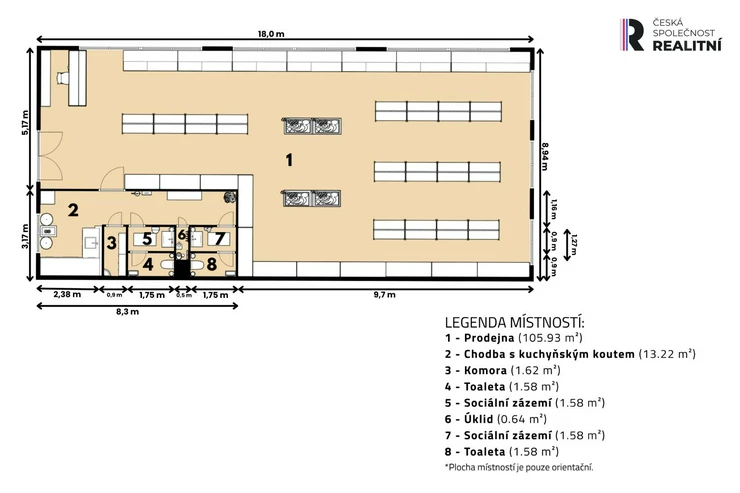 Sale of commercial space 149 m² with seven parking spaces Prague–Libuš,