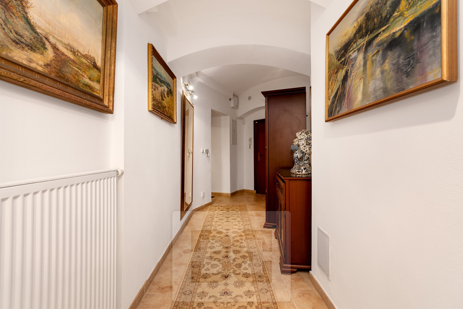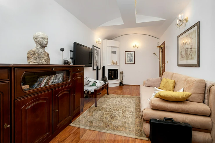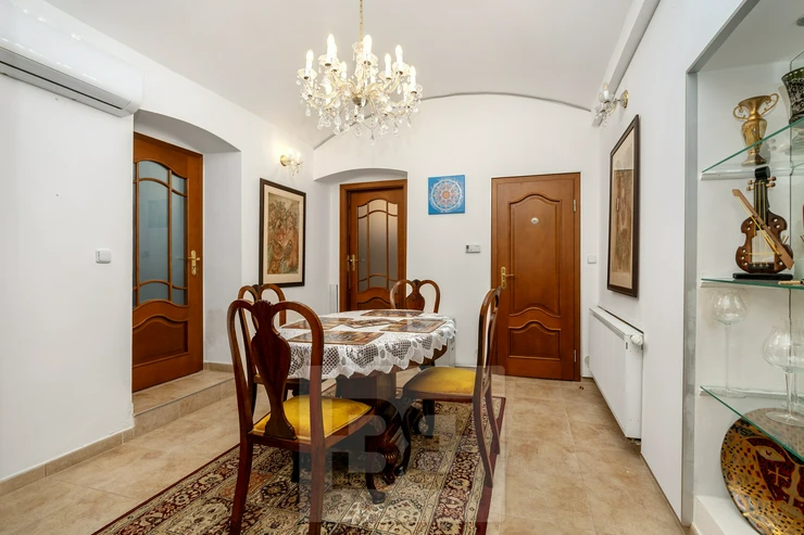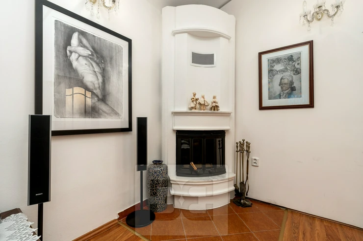 We offer for sale a space of 95.2 m² situated on the lower ground floor of a brick house with an elevator, on Na Kozačce Street. The space consists of an entrance hall, a spacious study, a walk-through room, a spacious pantry, a kitchen, a bathroom with a massage shower and toilet and a room with a functional fireplace. From the room and the kitchen you can enter a 6 m² covered terrace. The apartment has been completely renovated. A gas boiler is used for heating and water heating. The apartment also has air conditioning and a security system and fire safety doors. The atmosphere is added by the ceiling vaults. The sale also includes very high-quality equipment, see photo.