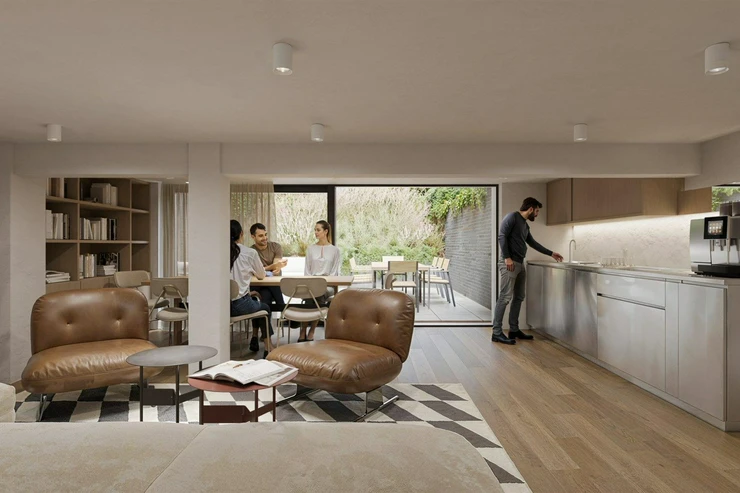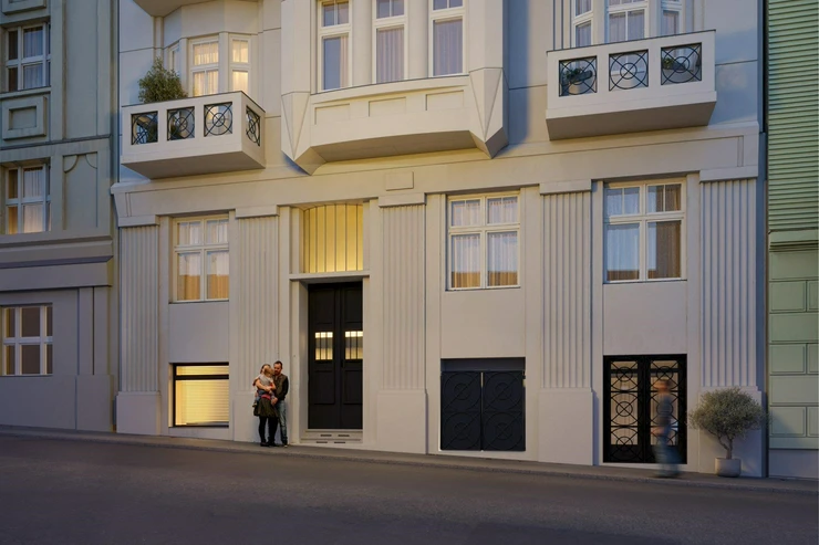 The unit is located on the ground floor, has an entrance directly from the street, and has a garden of 30 m² in the courtyard of the building. The space is offered in a shell & core state, which allows for individual solutions for the interior and technical facilities. Thanks to its location in a lively district with cafes, galleries, and design shops, it is suitable for a bistro, café, or services that naturally connect with the character of the location.