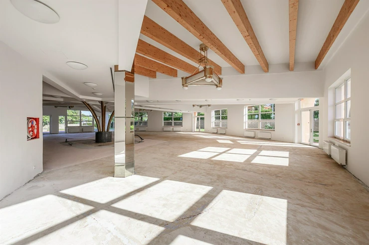 The property includes a large private garden of 812.7 m², which offers enough space for outdoor presentations, client service, or a relaxation area for employees. The total area is 2 141.5 m². Parking spaces are included in the price. The space is immediately available and suitable for commercial use in its current state - for example, as a showroom, medical facility, service center, or as an office-commercial operation.