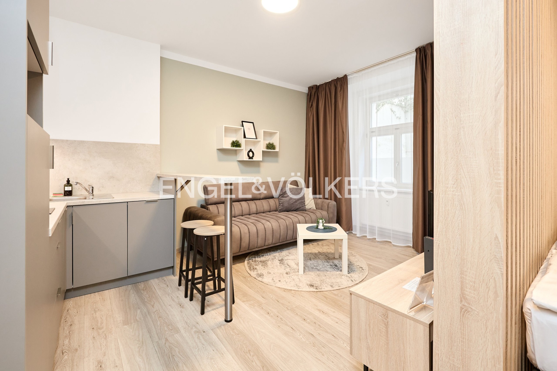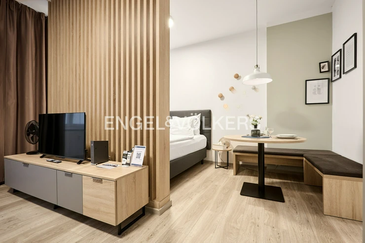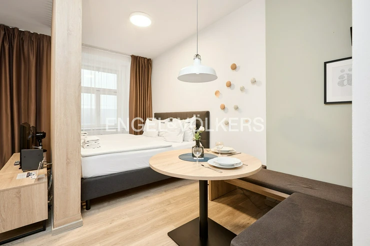We offer for sale a bright and modern 1+kk apartment, oriented towards a quiet courtyard. The apartment is fully equipped and ready for immediate move-in – no further investment is required. The modern kitchen is equipped with a refrigerator, dishwasher, and all appliances; the bathroom features an extraction system and a practical layout.