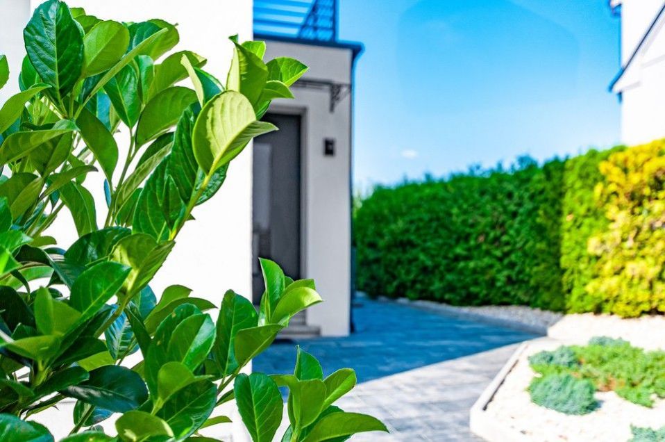 The above-standard new equipment throughout the house includes a fully equipped kitchen with appliances, REYNAERS COATEX aluminum windows with insulating triple glazing, massive REYNAERS COATEX aluminum entrance doors, interior doors painted in a gray design, the original restored staircase, wooden floors, underfloor heating in the bathrooms, a new gas boiler, top-quality bathrooms with tiles in a gray marble decor, artificial irrigation throughout the entire garden, a rainwater tank, a completely new fence with ornate custom-made fittings, a remote-controlled entrance gate drive.