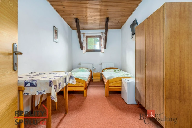 Nabízíme k prodeji výjimečně prostorný dům v malebném horském městečku Horní Maršov – místě, kde se snoubí klid, příroda a celoroční turistický ruch. Na první pohled působí jako rodinný dům s velkorysým zázemím. Při bližším pohledu ale zjistíte, že nabízí mnohem víc. Může se stát skutečně komfortním vícegeneračním bydlením, chalupou pro velkou rodinu nebo chytrou investicí s možností pravidelného příjmu z ubytování. Dům má 3 nadzemní podlaží a 1 podzemní podlaží, celkovou kapacitu až 38 lůžek a prošel rozsáhlou rekonstrukcí v roce 2010 (nové rozvody topení, elektroinstalace, vody, kompletní koupelny, plastová okna a dveře, komín, terasy, úpravy pozemku a další). Kolaudace proběhla v roce 1987.