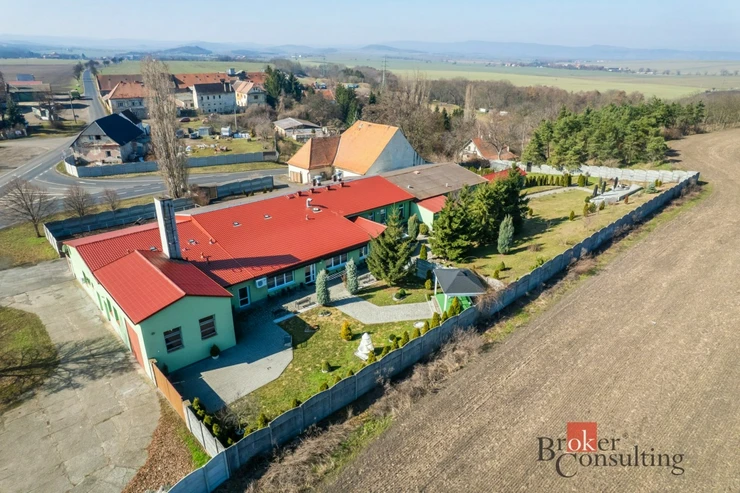 Nabízíme k prodeji rozsáhlý areál s restaurací, bytovou jednotkou a navazujícími pozemky v obci Vysoké Třebušice u Krásného Dvora, na dobře dostupném a viditelném místě u křižovatky komunikací s napojením na okolní města. Z nemovitosti je rychlé spojení na Krásný Dvůr, Podbořany i na silnici I/27, hlavní tah mezi Mostem a Plzní.