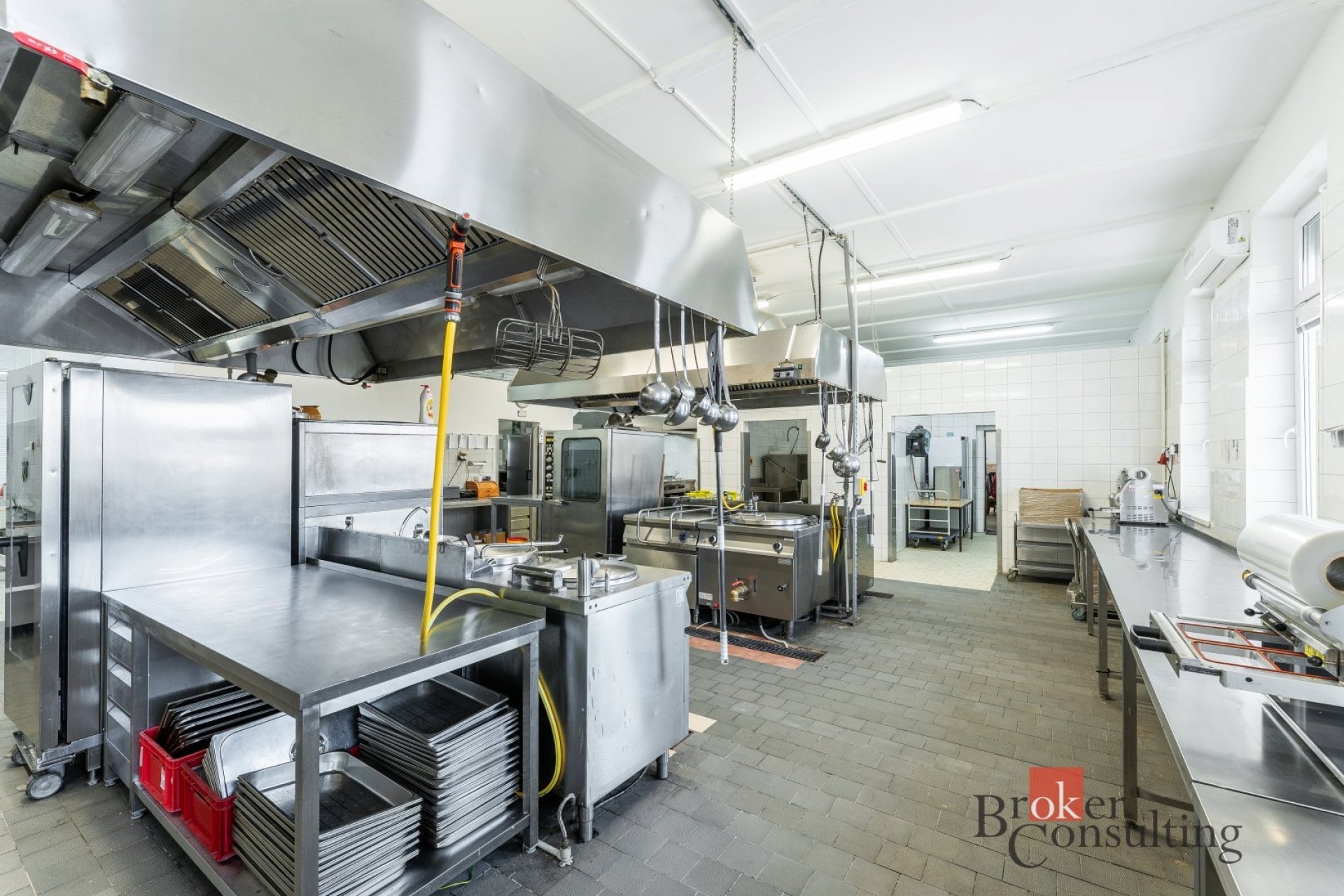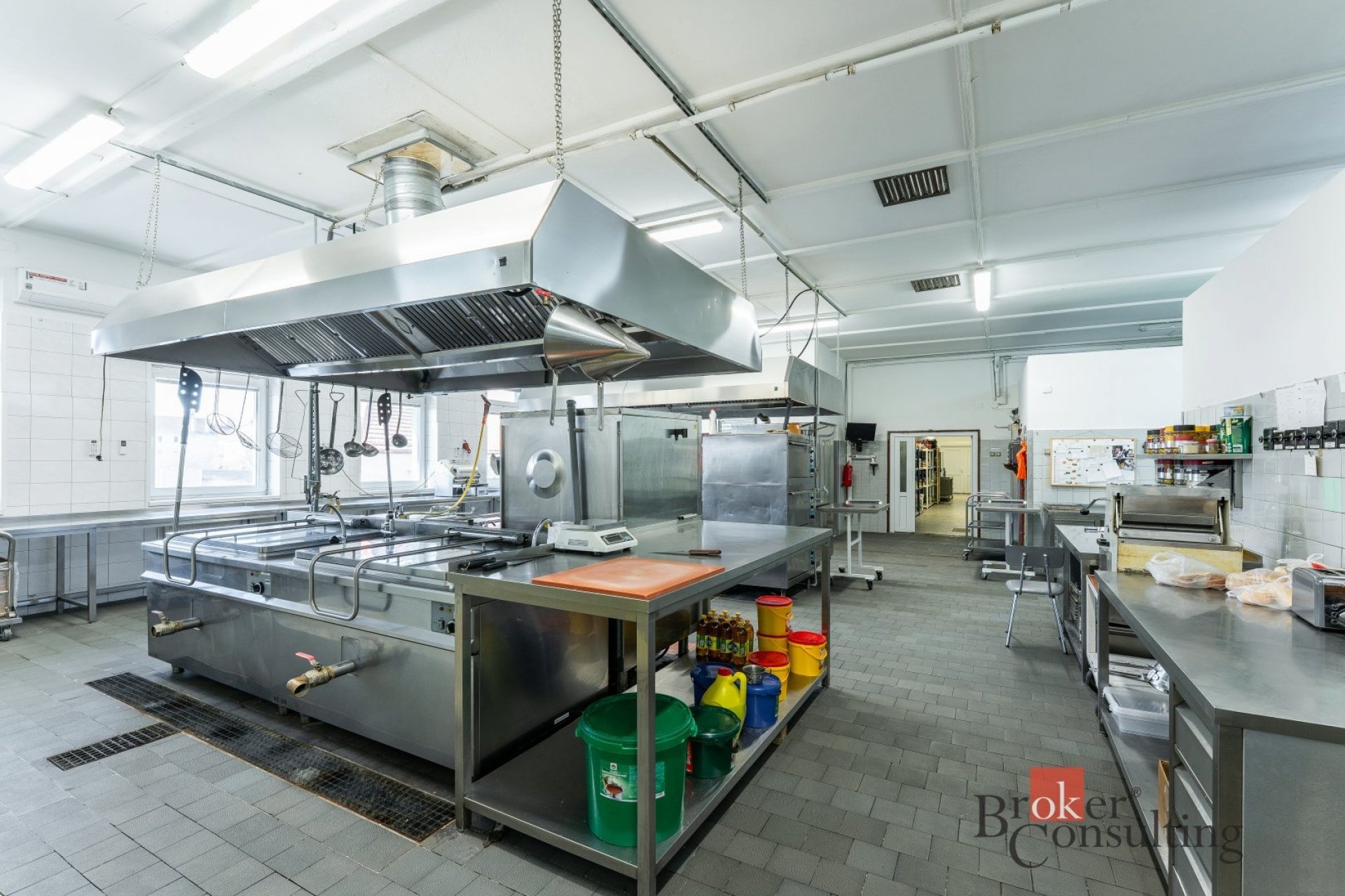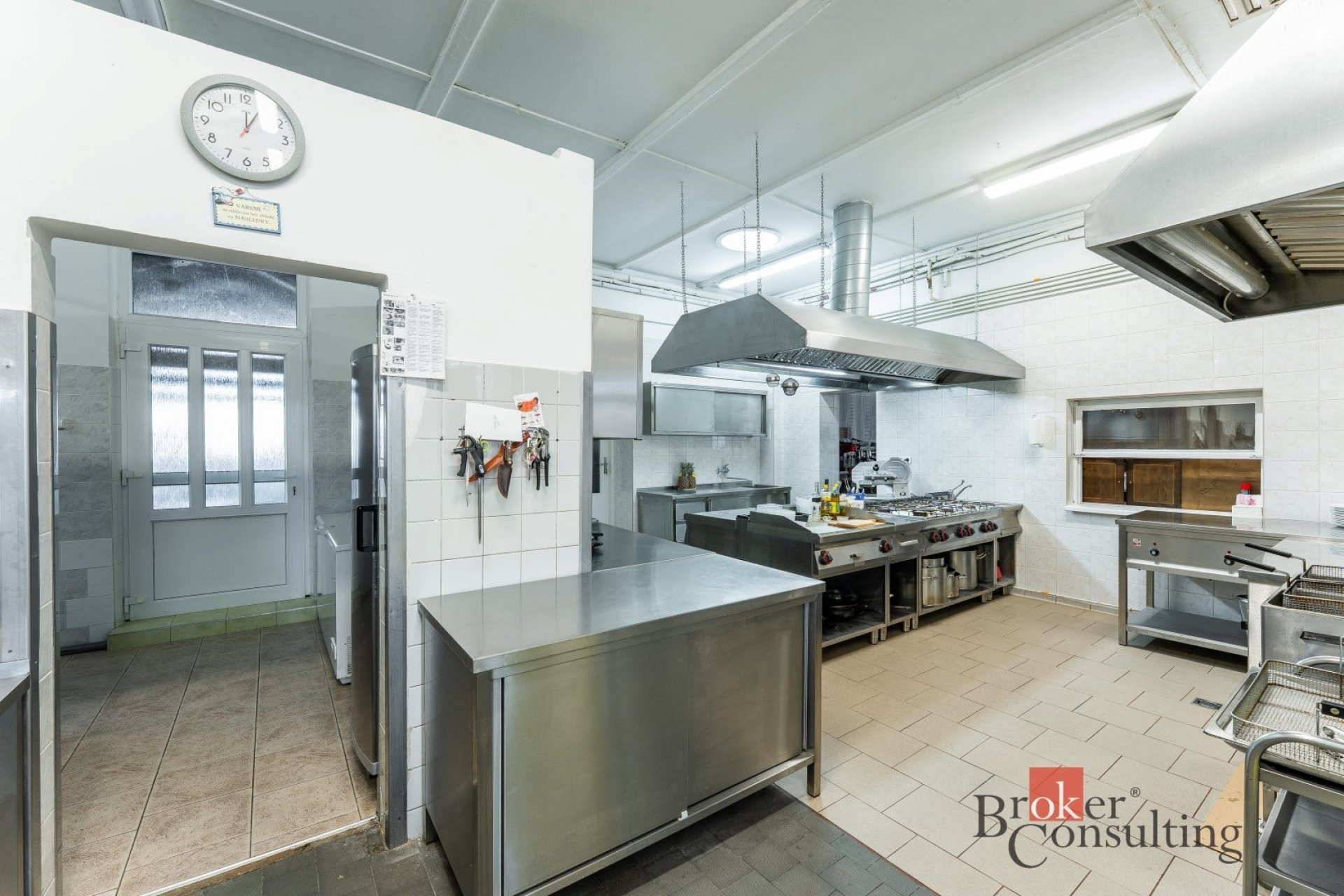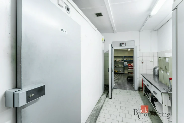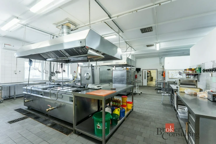 Velkou předností nemovitosti je rozsáhlá profesionální kuchyně ve velmi dobrém technickém i hygienickém stavu, vybavená gastronomickou technologií, nerezovými pracovními plochami, varnými bloky, konvektomatem a digestořemi. Součástí je také kompletní zázemí včetně přípraven, skladů a velkého chladicího boxu.
