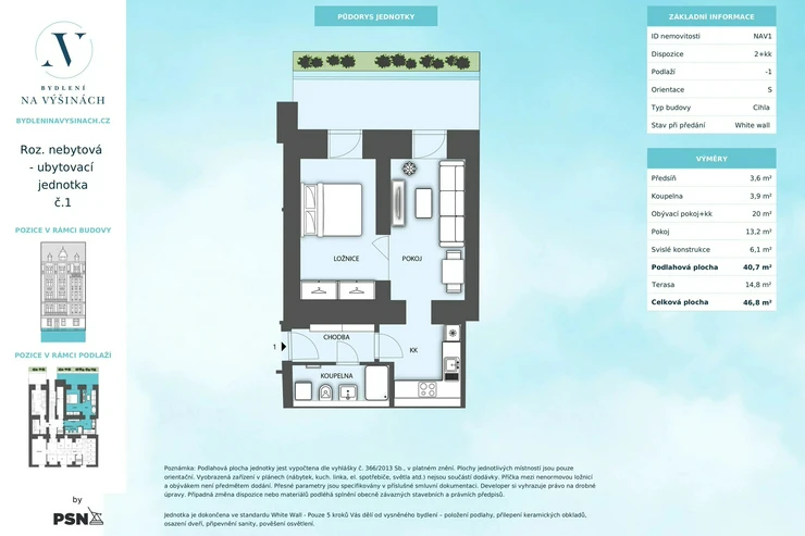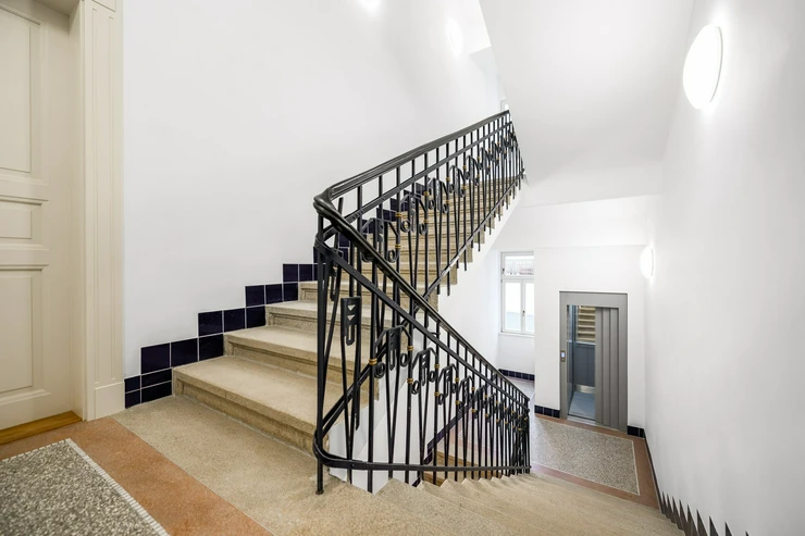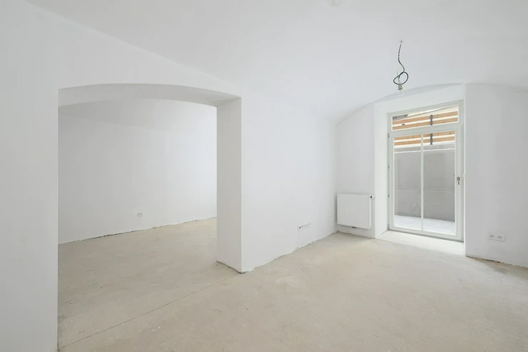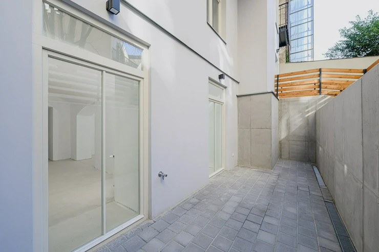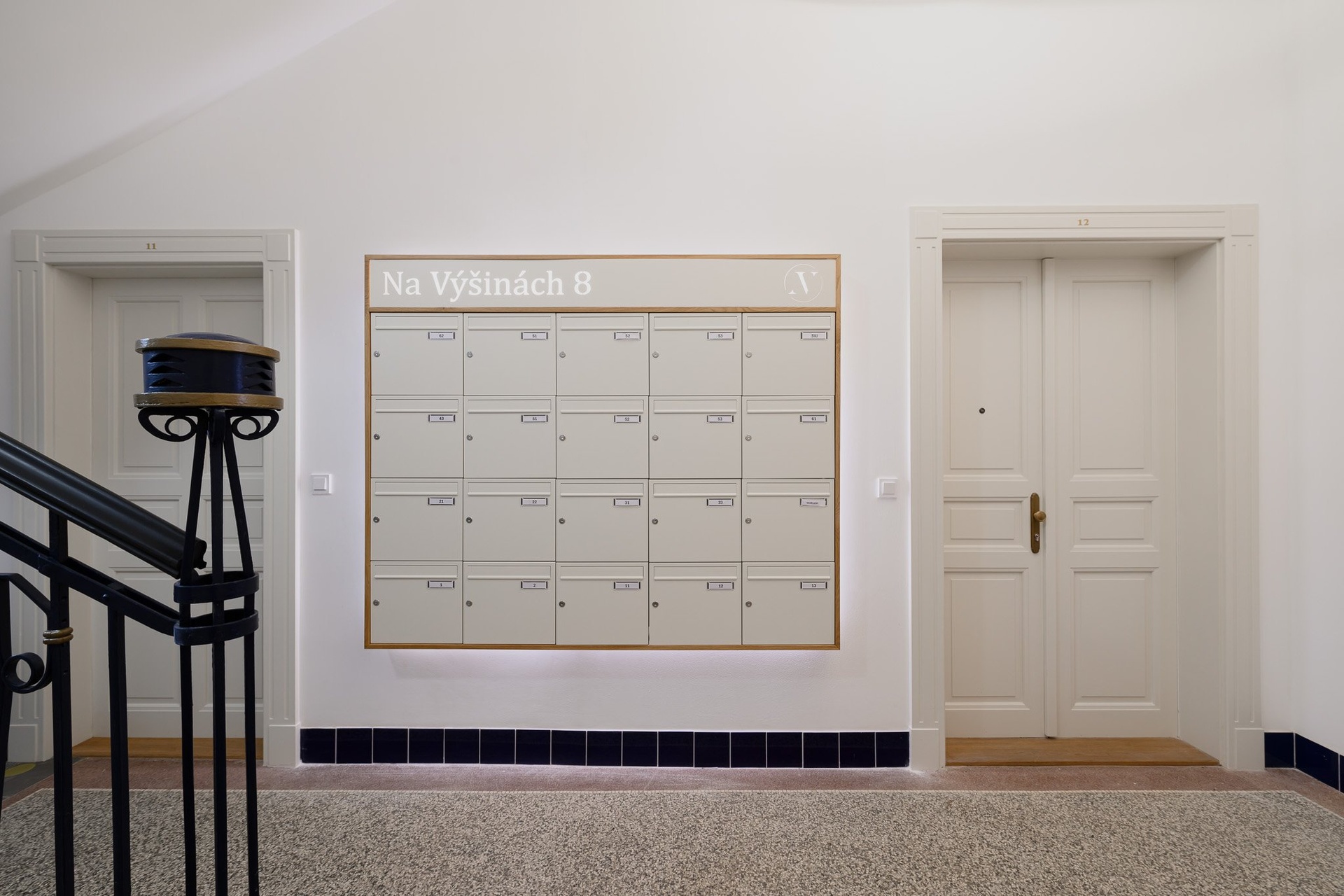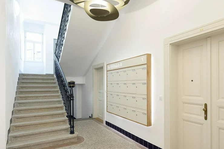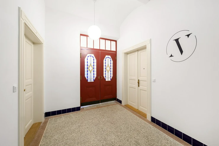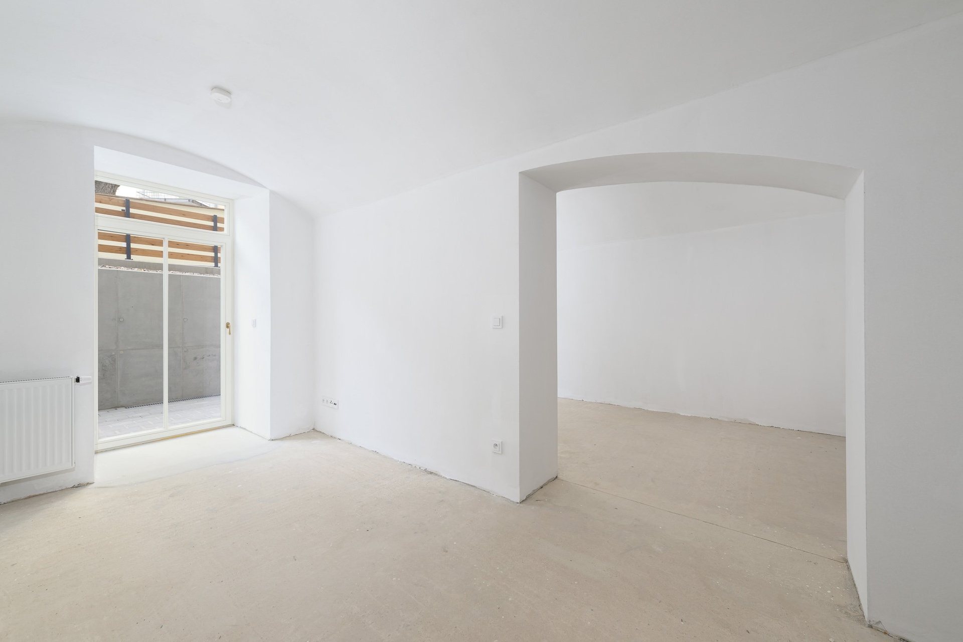The basement unit offers a thoughtful solution for a modern lifestyle: an open living space with preparation for a kitchen, a separate bedroom and a bathroom. It also includes a private front garden - the perfect place for weekend brunches or evenings under the stars. The white wall design allows the future owner to fine-tune the interior exactly to their wishes. The building has undergone a complete renovation in the spirit of the original Letná architecture - with an emphasis on detail, materials, and quality of workmanship.