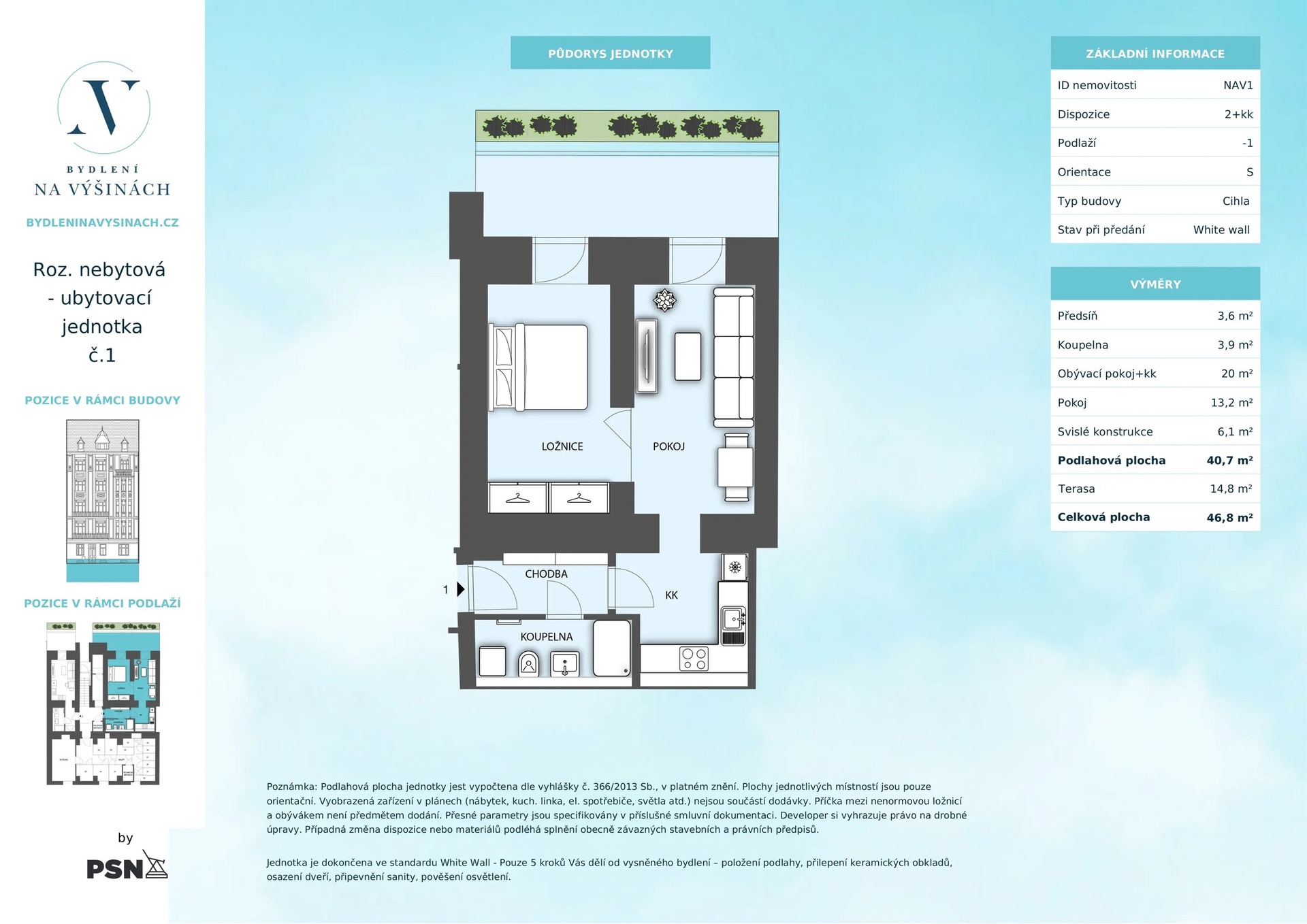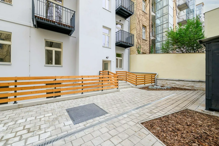 This stylish one-bedroom apartment has a floor area of 46.8 m² and boasts a private front garden. Ideal for those who want to live in the popular Prague neighborhood of Letná - and at the same time have peace, space, and the opportunity to complete the interior according to their own design ideas.
