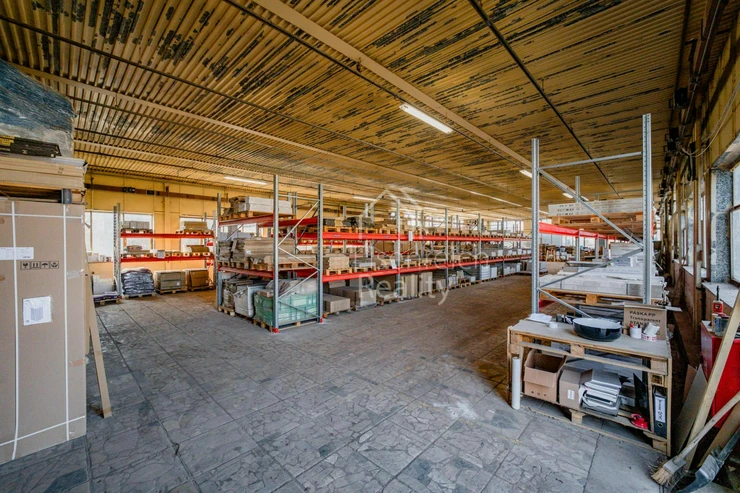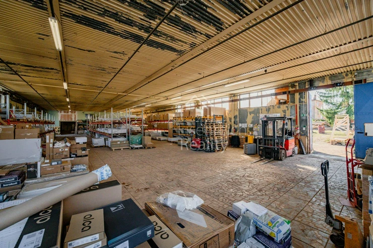 Hala je vybavena betonovou podlahou z dlaždic a je připravena k okamžitému využití součástí jsou skladové regály umístěné jak uvnitř objektu, tak i na manipulační ploše. K dispozici jsou také toalety.