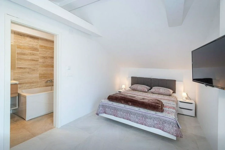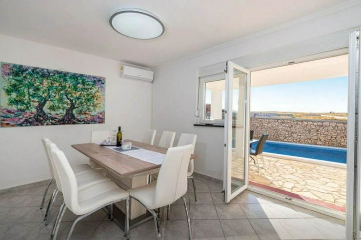 Sale of a newly renovated villa with pool on the Croatian coast of northern Dalmatia. Tastefully and purposefully furnished villa with beautiful sea views is located 100m from the sea. The property is located on the edge of a picturesque port village 17 km northeast of Zadar, which offers various leisure activities (beaches, boats, fishing, bars, restaurants, water sports, beach for dogs) as well as the surrounding area. Great accessibility of the location 30 minutes from the airport in Zadar and 900 km from Prague.