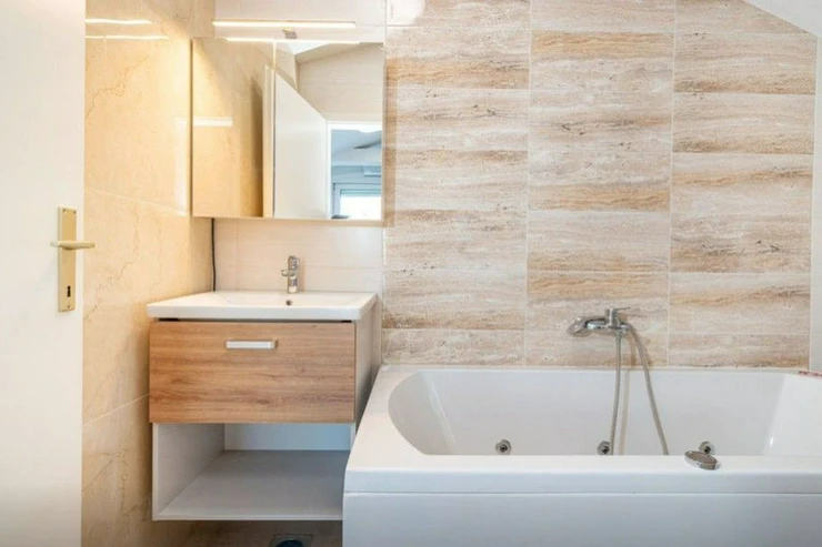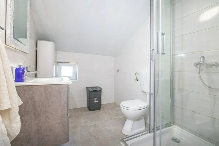 Thanks to its concept, the villa is suitable for an investment plan. It offers its inhabitants 4 spacious bedrooms, 4 bathrooms, two terraces, one upstairs and the other by the pool with barbecue, a spacious living room with kitchen and dining area (communicated by the owner). The total usable area is 160 square meters, the outdoor pool is 32 square meters, there is one parking space on the plot. The land of 350m is bordered by a stone wall, which brings privacy to the inhabitants of the villa.