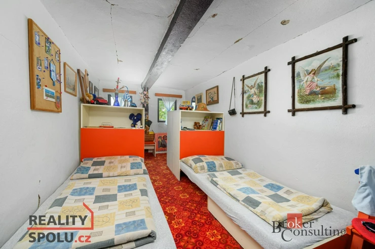 Útulná ložnice a pokojíček v podkroví poskytují dostatek místa pro rodinné dovolené nebo víkendové pobyty.