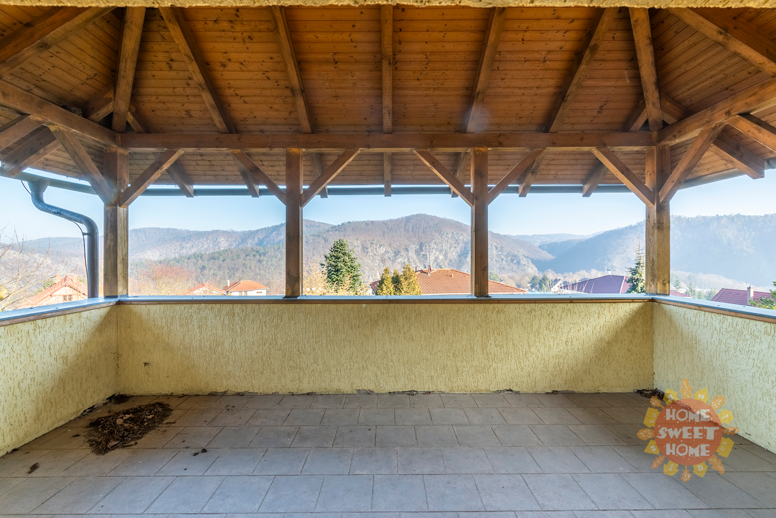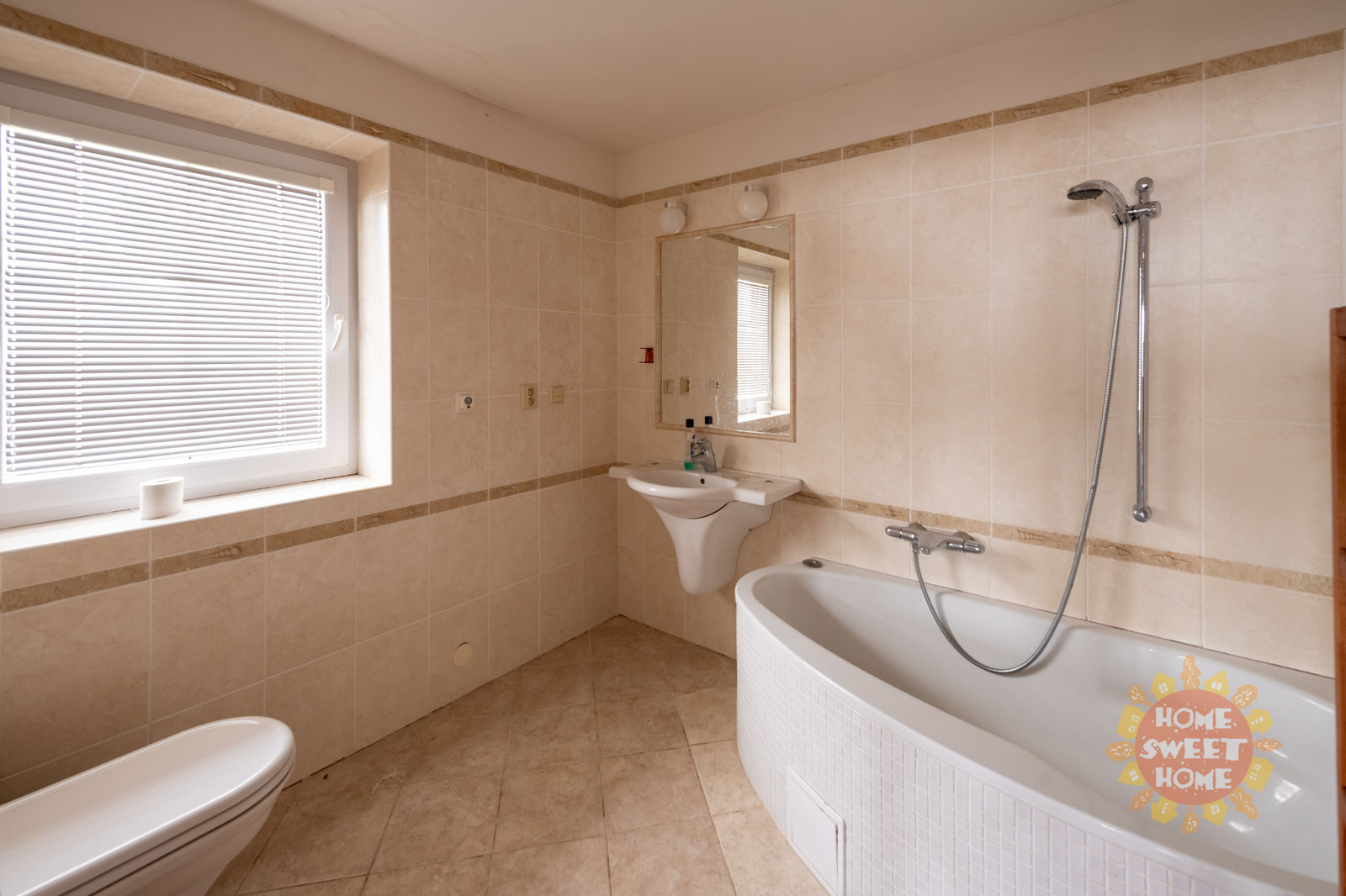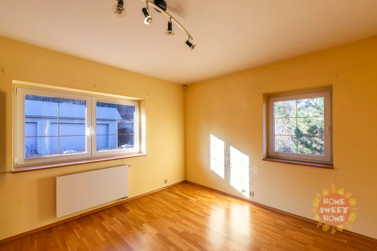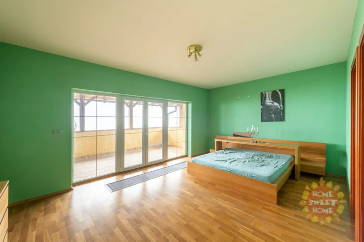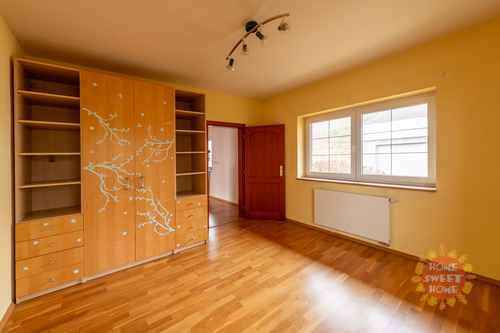 On the first floor there are bedrooms, a guest room, two bathrooms and a dressing room. On the parents' bedroom and room II. connected by a covered terrace with a view into the roof. Pull-down stairs are installed in the corridor in the ceiling for access to the attic space.