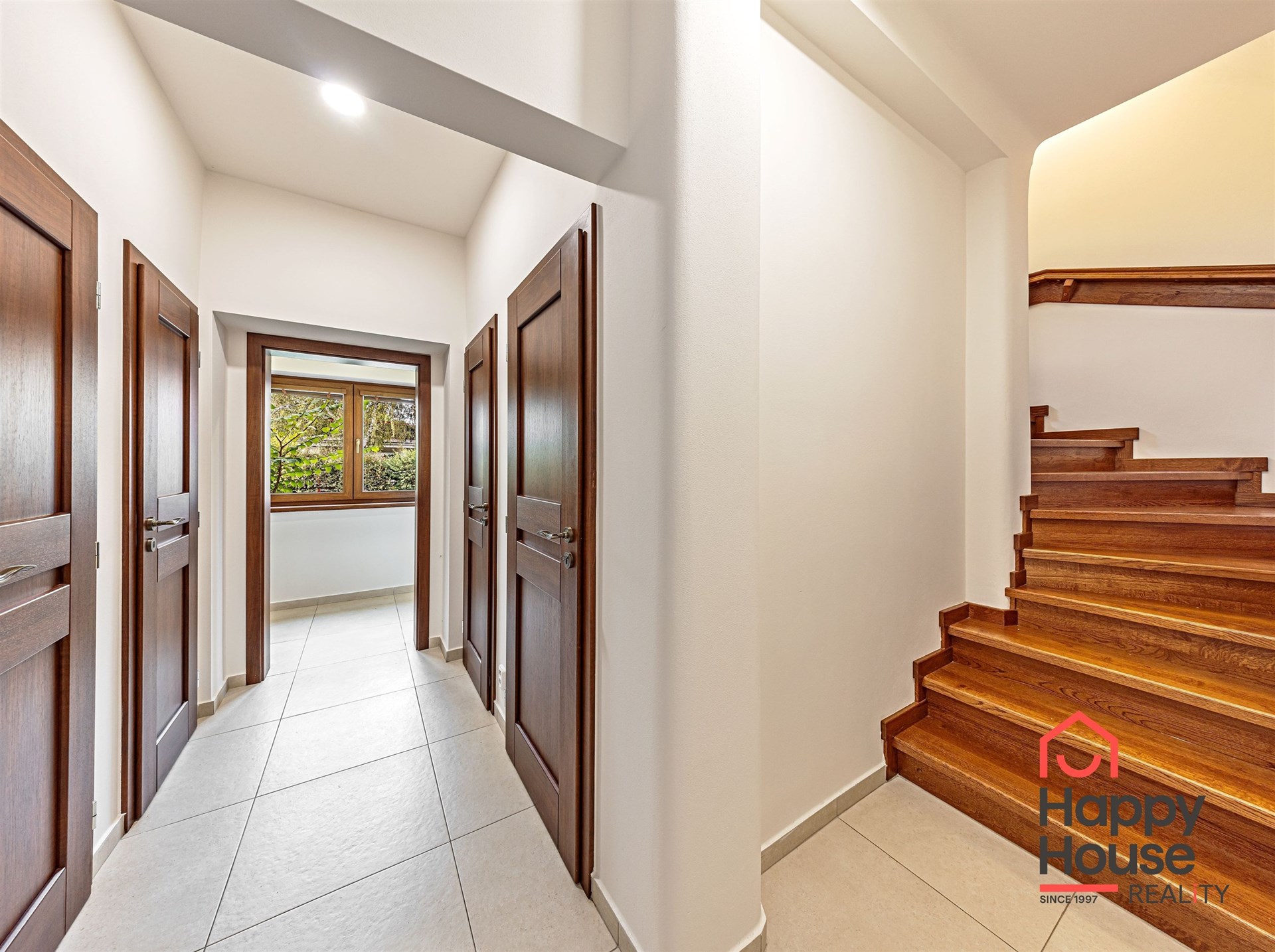 We are exclusively offering for sale this beautiful terraced family house (161 sqm) after a complete high standard reconstruction in 2021 located in the desired, green area of Prague 4-Záběhlice. The property with a 4+1 layout includes a garden (85 sqm) in the inner block and a terrace, situated very close to Roztylské náměstí. The house has an added front veranda compared to the original layout, which creates a spacious entrance hallway inside. From the hallway, there is an entrance to a vestibule with a toilet, storage room, entrance to the kitchen, living room, and basement. The new modern kitchen with a dining area is equipped with stylish kitchen units and all built-in appliances - fridge/freezer, induction hob, electric convection oven, microwave, and dishwasher. There is direct access to the garden from the dining room. Next to the dining room is a separate living room with beautiful wooden stairs leading to the first floor. On the first floor, there are 2 more interconnecting rooms and a spacious, stylish bathroom with a corner bathtub, shower cubicle, and toilet. On the top attic floor, there is another spacious room suitable as a bedroom, study, playroom, or guest room. The house has a basementwith new Junkers gas boiler with a water tank, gas meter, and water meter. The floors are covered with new, high-quality vinyl flooring, high quality interior doors, new windows with tripple glass and blinds. Front of the house is insulated. Possibility to arrange with the city to park in front of the house on a part of the grassy area, just like the surrounding neighbors. The location is very attractive and pleasant in a quiet area of Prague with good transport connection to the centre of Prague - a 10-minute bus ride to the nearest Budějovická metro station (red line C), with a bus stop right by the house. International schools of Prague 4, such as the Canadian Montessori School in Roztyly, EISP (the English International School of Prague) in Libuš, and PBS (Prague British School) in Kamýk, are a short drive away - approximately 10 mins by car. The Zábehlice district offers high-quality local amenities, and there is also a large Westfield Chodov shopping center nearby. The property is suitable for residential as well as office purposes. Possibility to take over current mortgage of 3,3mil CZK with an interest rate 1,44% until 2028. The PENB card states class E.