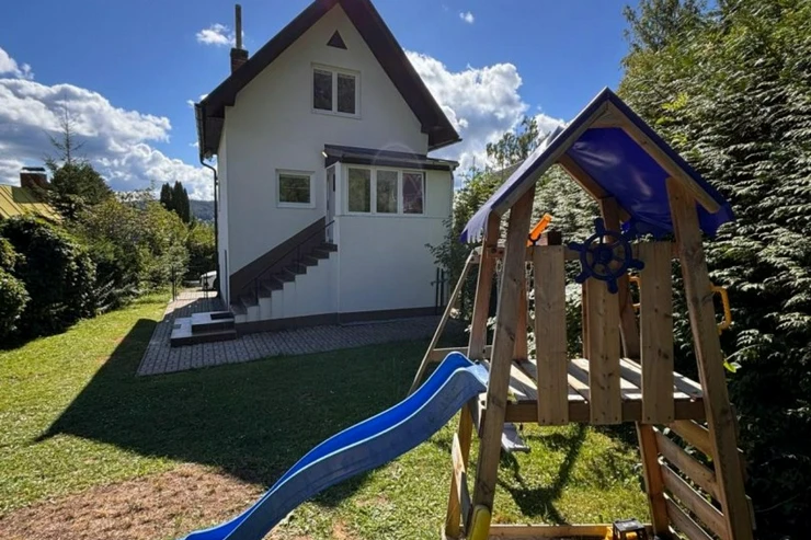 Chata je připojená na obecní kanalizaci, má svoji vlastní vodu a veškeré fungování se řeší na elektřinu. Nemovitost je po kompletní rekonstrukci, kdy se dělala nová elektřina, voda a střecha. Zahrada se oplotila, vytvořila se zde velká, zastřešená pergola s posezením a pro děti tu najdete hřiště s pískovištěm. Venku je instalována kamera, která monitoruje okolí chaty, parkoviště a vchody k chatě. Je samozřejmě ovladatelná na dálku pomocí aplikace. V domku je vytápění řešené elektrickým podlahovým topením se třemi samostatnými termostaty, které jsou ovládané každý zvlášť. Je k nim možné stáhnout aplikaci do telefonu a na dálku každému individuálně nastavit teplotu. V obývacím pokoji je prosklený designový krb, který zde slouží spíše k večerní romantice než k vytápění. Většinu vybavení domku tvoří na míru zhotovené truhlářské výrobky. Schody do patra a madlo jsou z masivního dřeva, dále zde najdeme posuvné dveře a vestavěné skříně.
