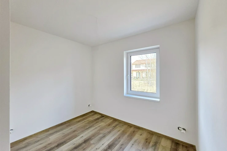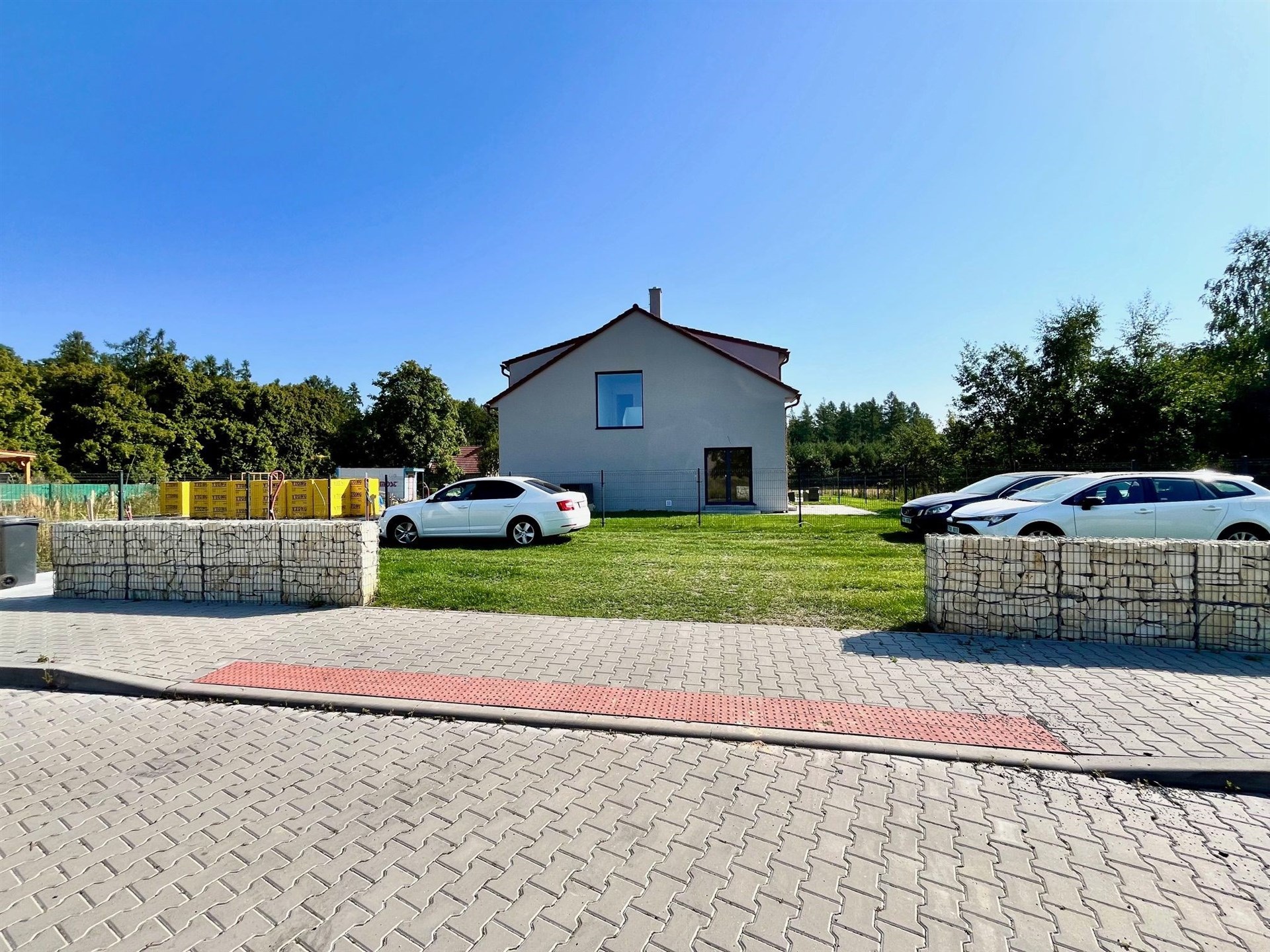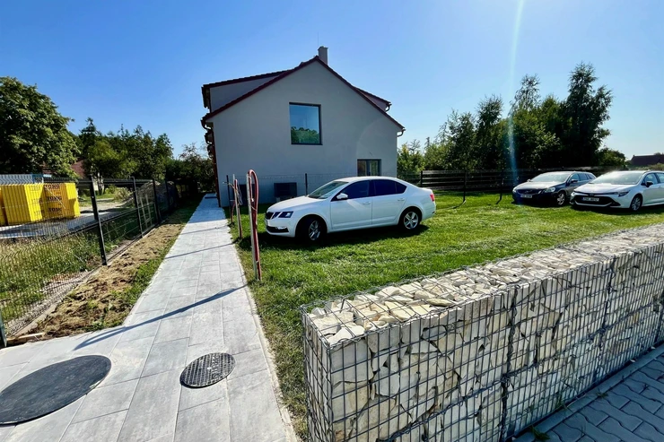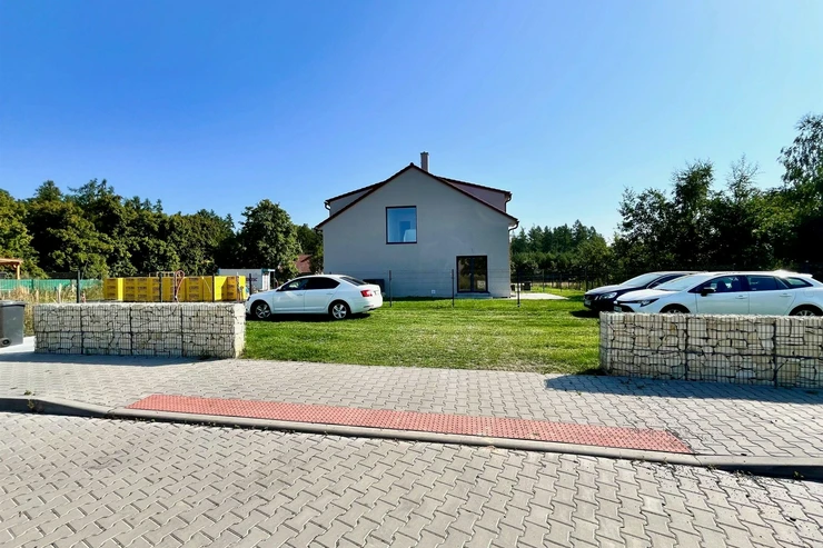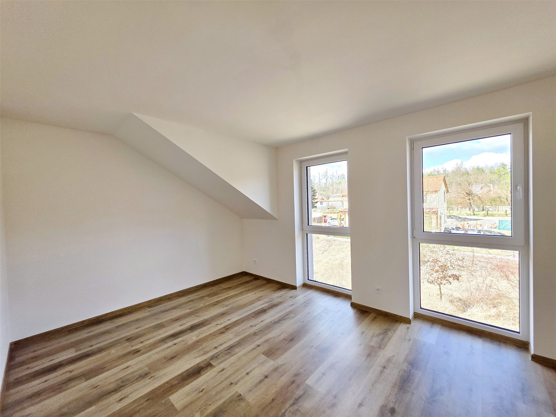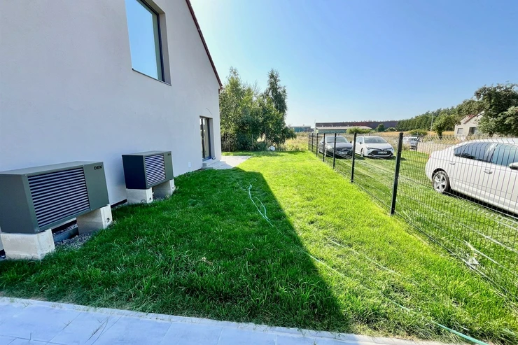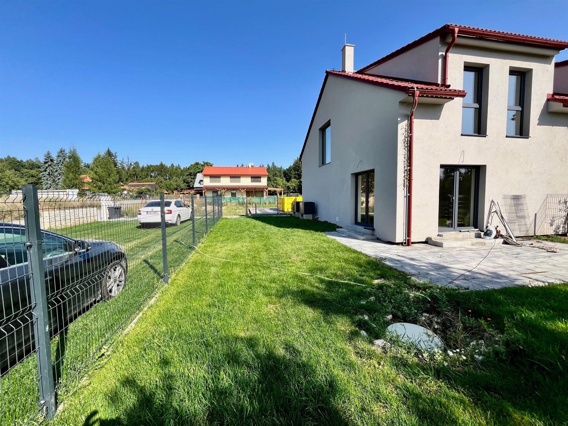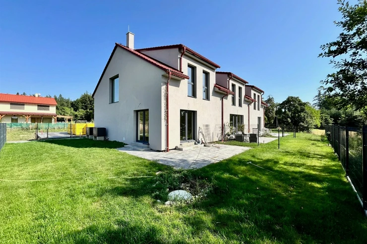 Nabízíme Vám novostavbu rodinného domu s dispozicí 5+kk, na pozemku o rozloze 211 m2 v obci Drnek. V 1. NP se nachází obývací pokoj s kuchyňským koutem, pracovna, komora, toaleta, zádveří a schodiště do 2. NP. Ve 2. NP jsou tři ložnice, koupelna s vanou a toaletou. Z obývacího pokoje je přístup na terasu ze zámkové dlažby. Dům bude kompletně oplocen. V celém domě jsou tři bytové jednotky a ke každé jednotce náleží dvě vyhrazená parkovací stání. Vytápění je řešeno tepelným čerpadlem (podlahové vytápění v celém domě), voda městským vodovodem a odpad kanalizací. Občanská vybavenost je v okolí. Výborná dostupnost do Prahy (dálnice D6 5 minut).