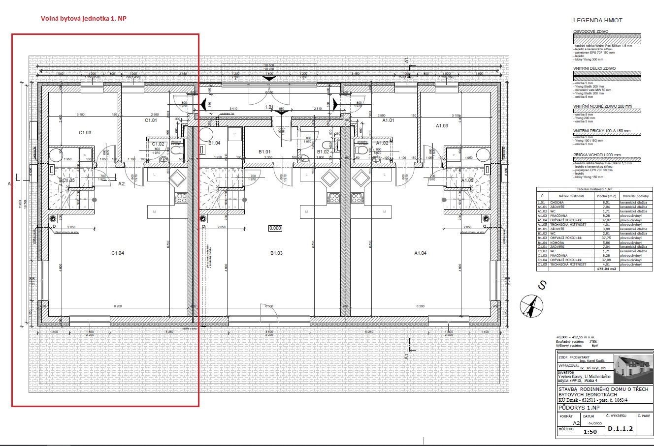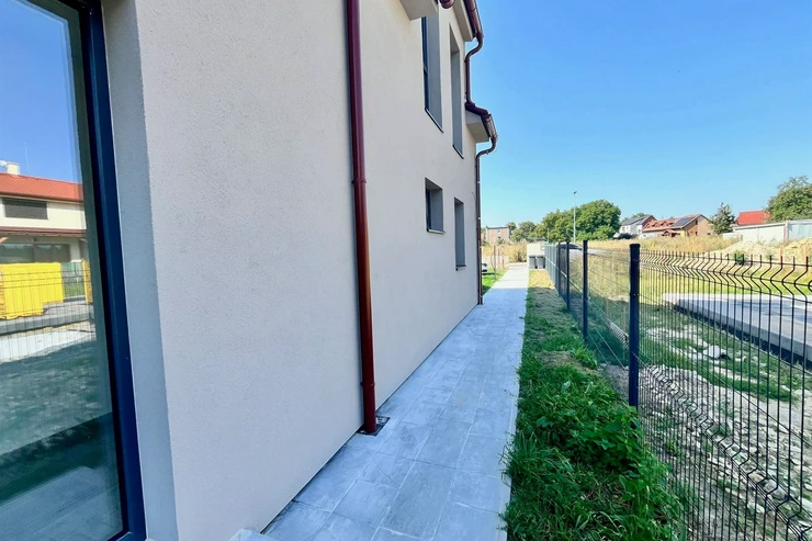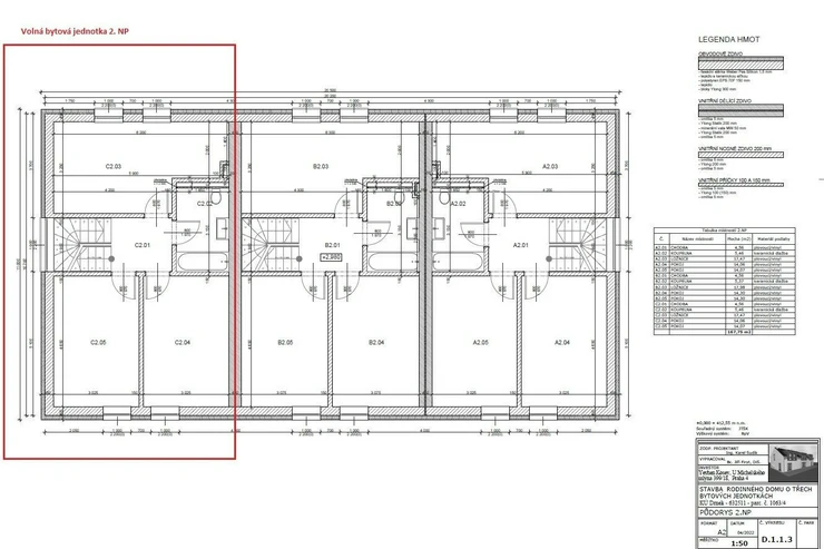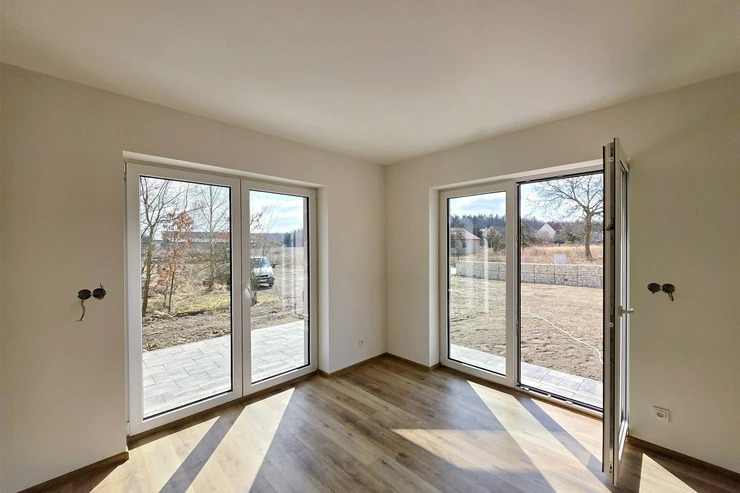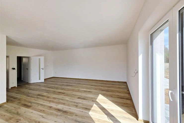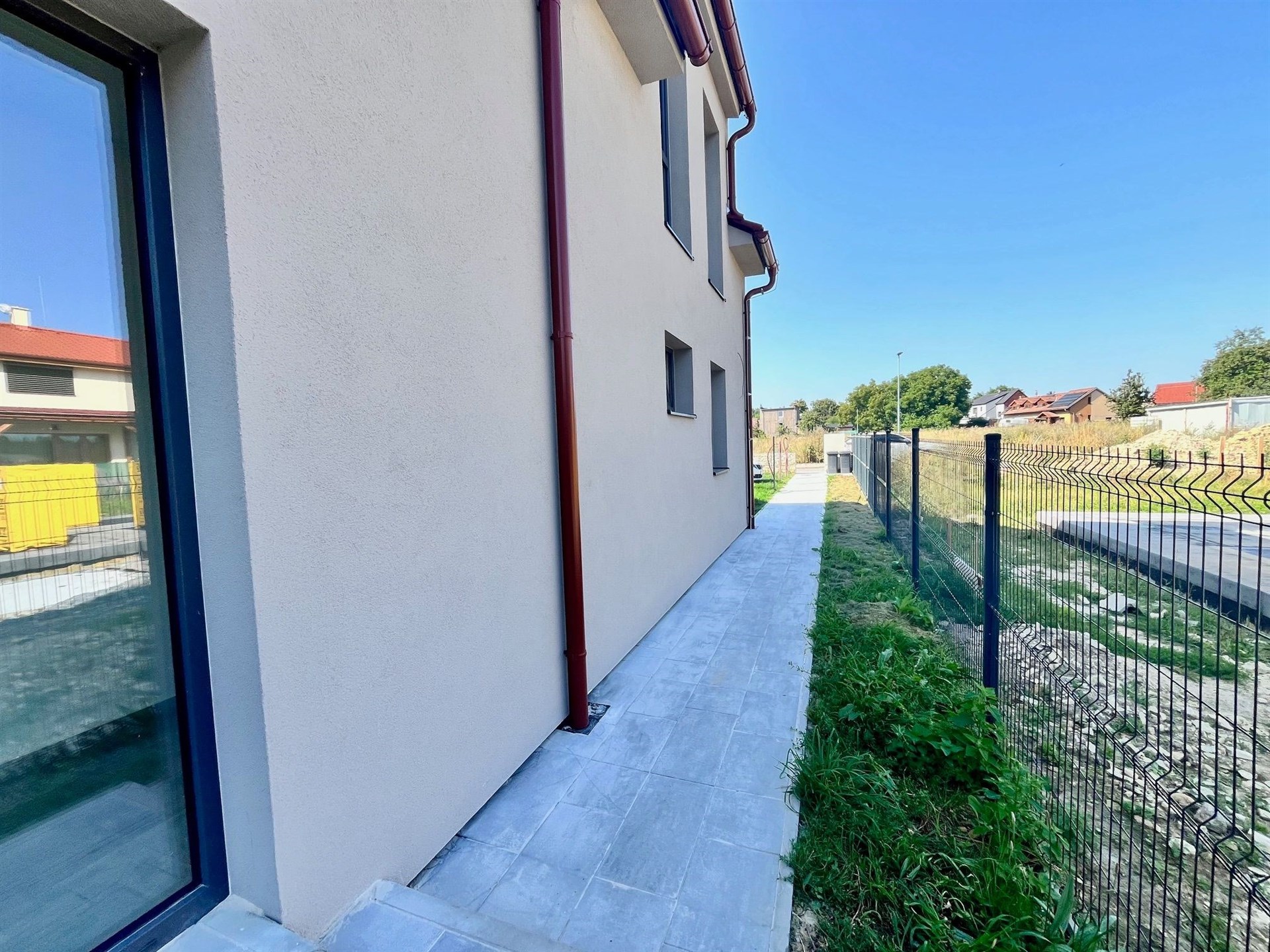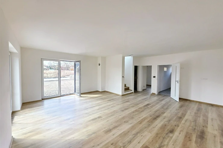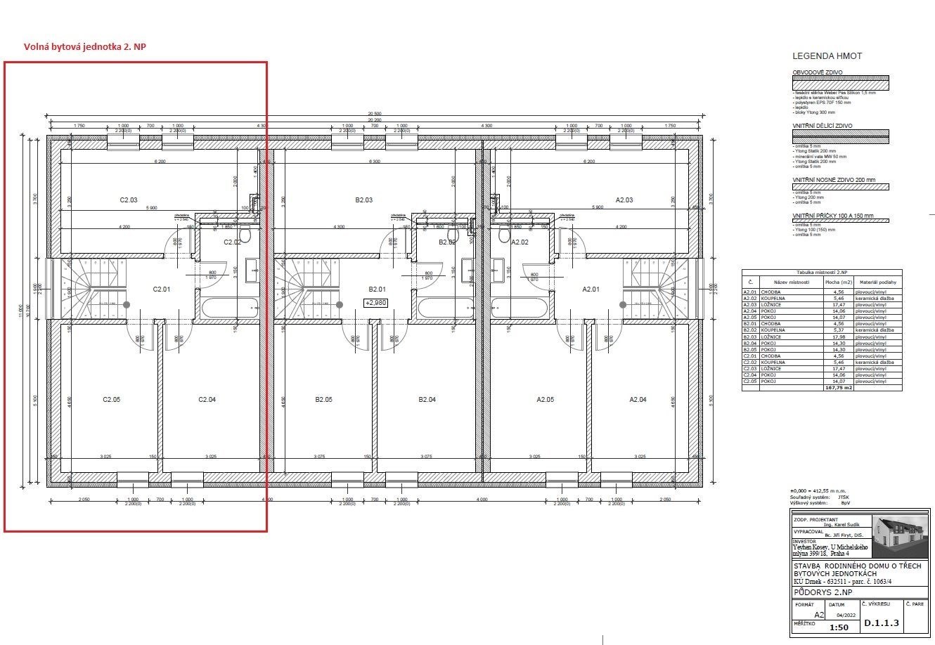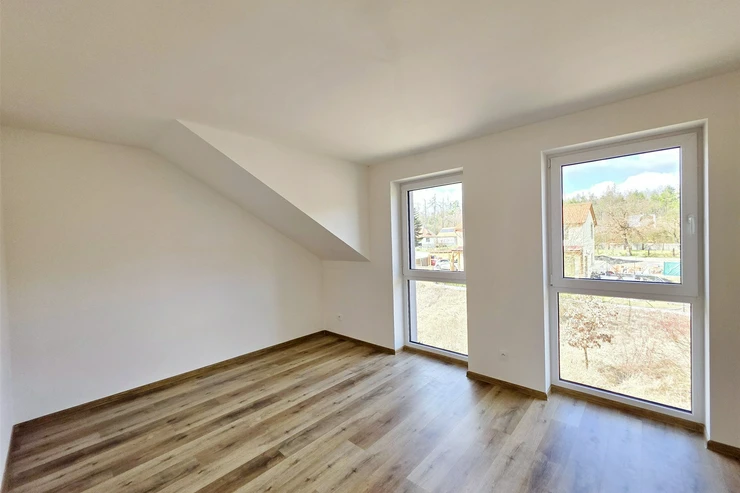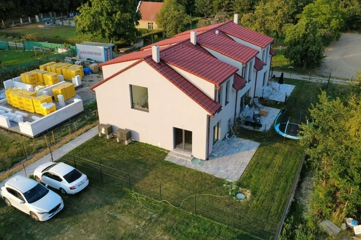 Nabízíme Vám novostavbu rodinného domu s dispozicí 5+kk, na pozemku o rozloze 211 m2 v obci Drnek. V 1. NP se nachází obývací pokoj s kuchyňským koutem, pracovna, komora, toaleta, zádveří a schodiště do 2. NP. Ve 2. NP jsou tři ložnice, koupelna s vanou a toaletou. Z obývacího pokoje je přístup na terasu ze zámkové dlažby. Dům bude kompletně oplocen. V celém domě jsou tři bytové jednotky a ke každé jednotce náleží dvě vyhrazená parkovací stání. Vytápění je řešeno tepelným čerpadlem (podlahové vytápění v celém domě), voda městským vodovodem a odpad kanalizací. Občanská vybavenost je v okolí. Výborná dostupnost do Prahy (dálnice D6 5 minut).