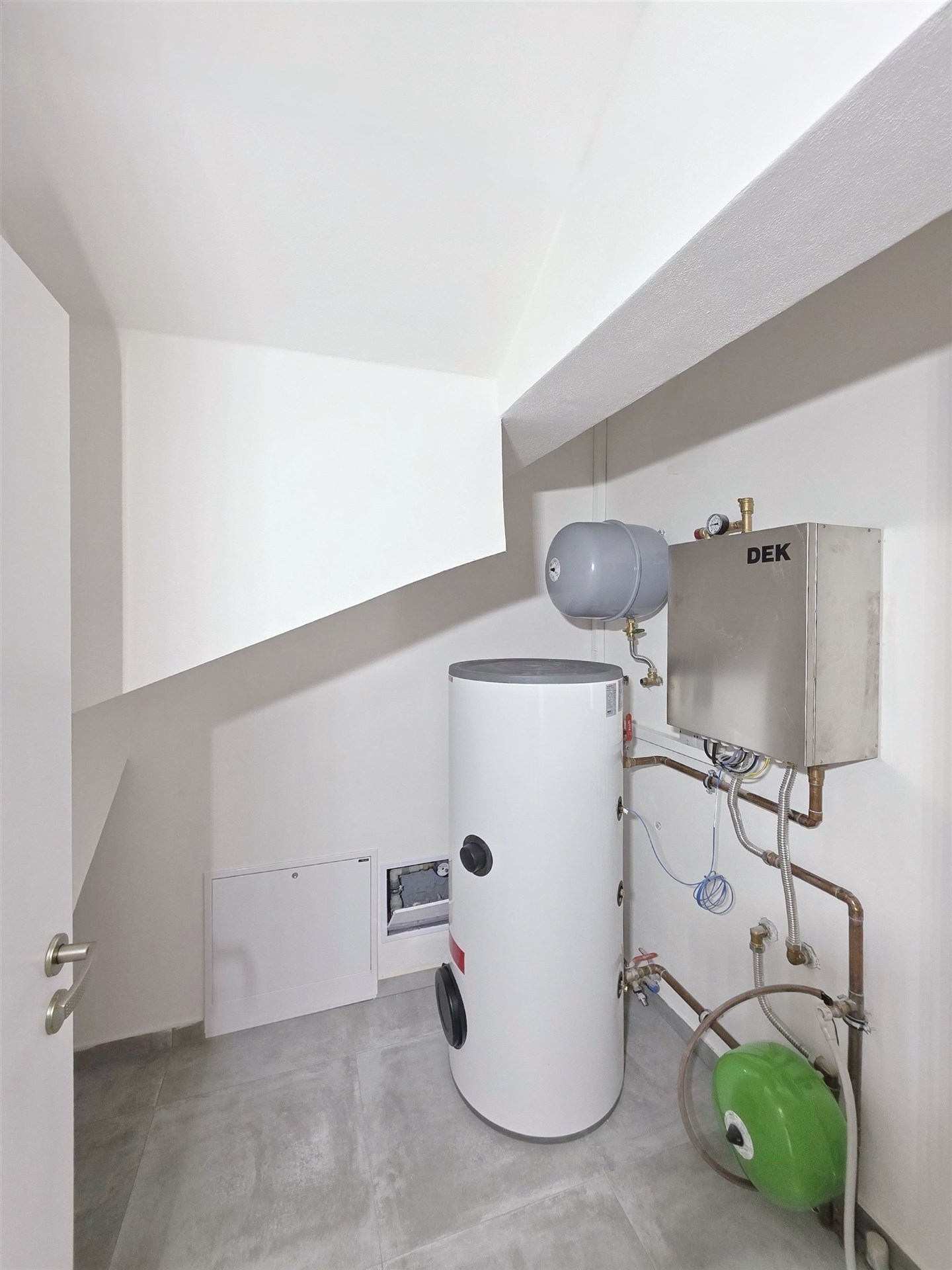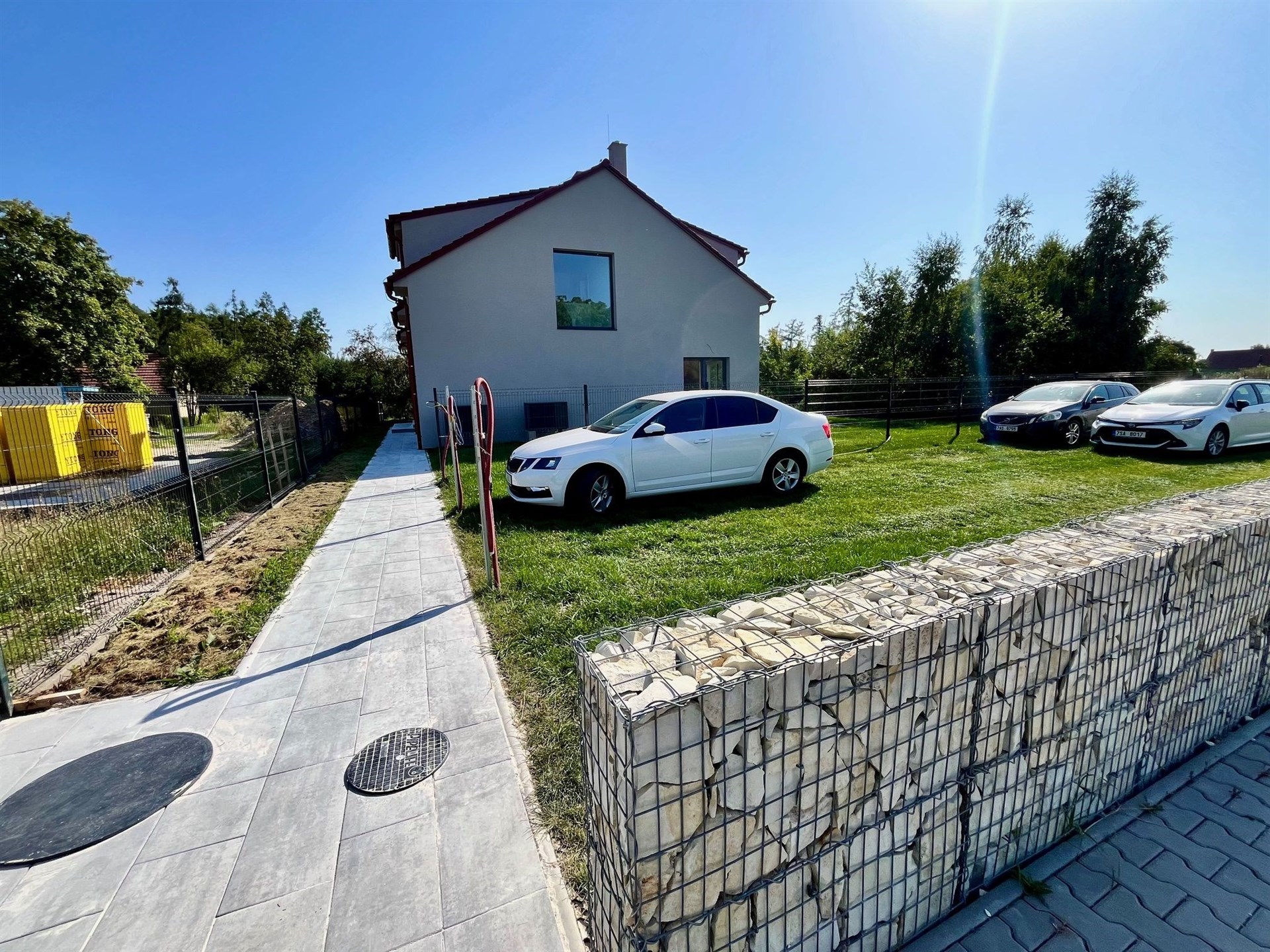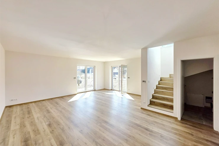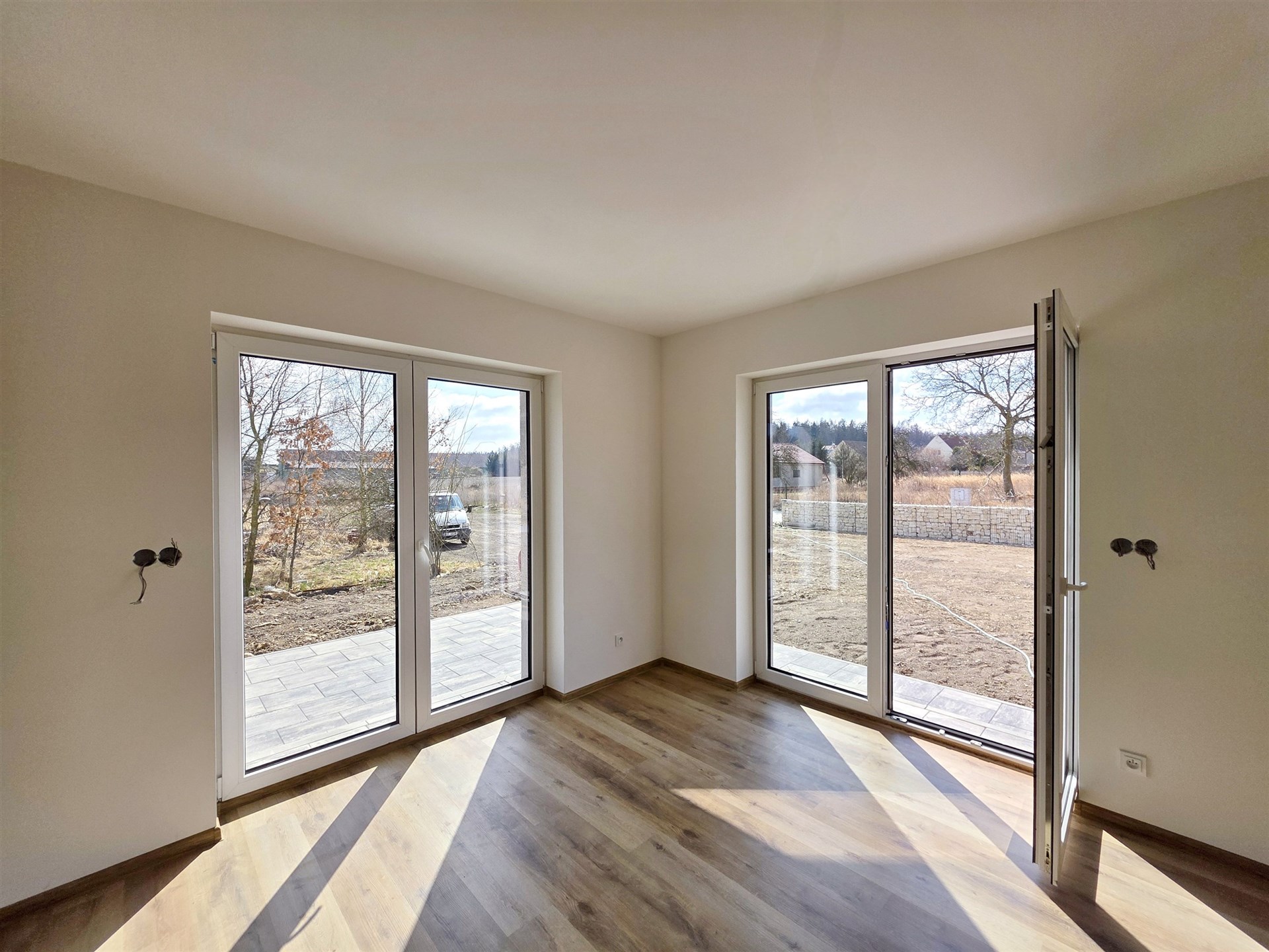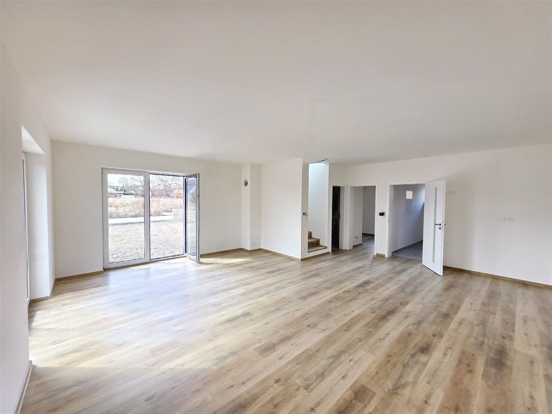Nabízíme Vám novostavbu rodinného domu s dispozicí 5+kk, na pozemku o rozloze 211 m2 v obci Drnek. V 1. NP se nachází obývací pokoj s kuchyňským koutem, pracovna, komora, toaleta, zádveří a schodiště do 2. NP. Ve 2. NP jsou tři ložnice, koupelna s vanou a toaletou. Z obývacího pokoje je přístup na terasu ze zámkové dlažby. Dům bude kompletně oplocen. V celém domě jsou tři bytové jednotky a ke každé jednotce náleží dvě vyhrazená parkovací stání. Vytápění je řešeno tepelným čerpadlem (podlahové vytápění v celém domě), voda městským vodovodem a odpad kanalizací. Občanská vybavenost je v okolí. Výborná dostupnost do Prahy (dálnice D6 5 minut).