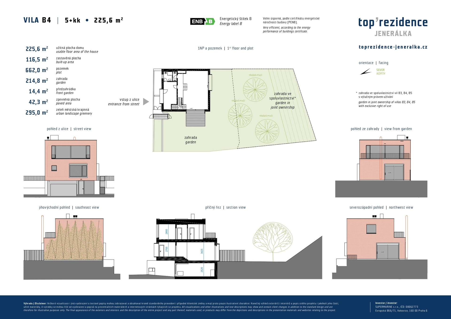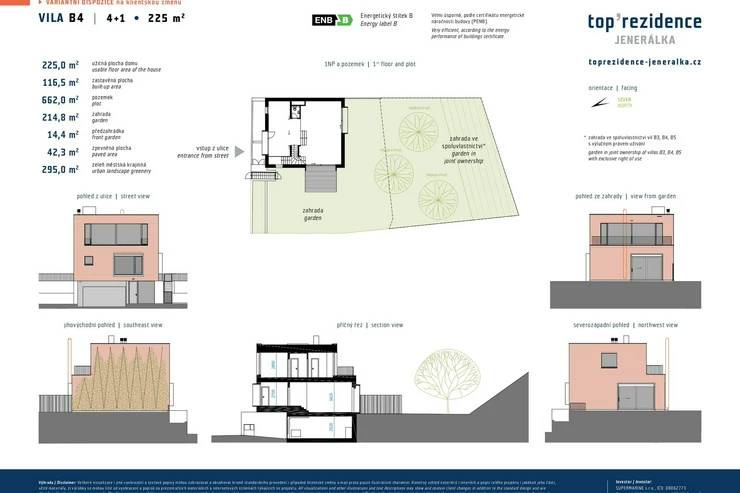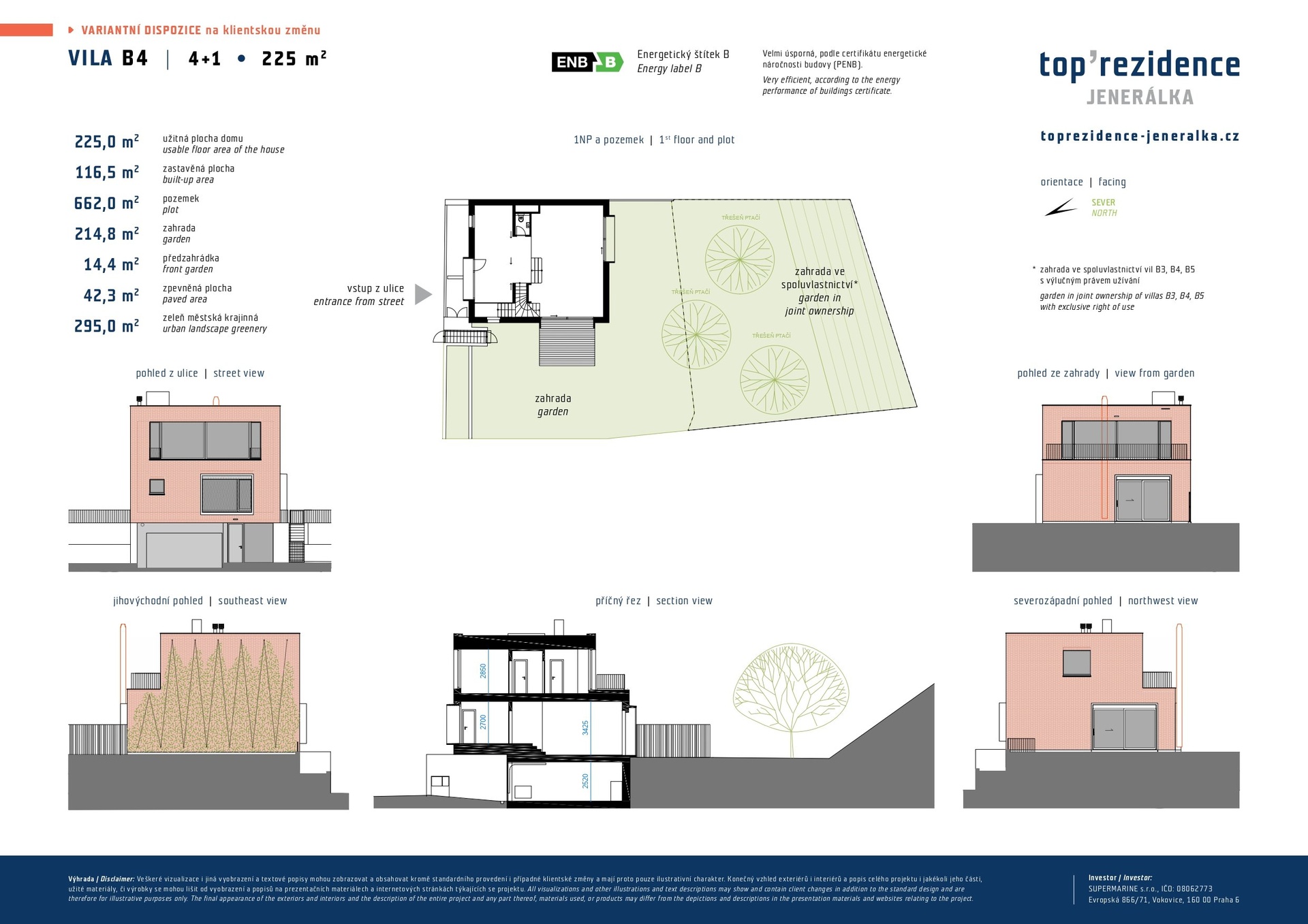 The detached villa with the designation TRJE.B4, with a layout of 5 +kk with a usable area of 225.6 m² and a garden of 214,8 m², is designed by the architectural studio Abtsmolen in the style of the Raumplan concept.