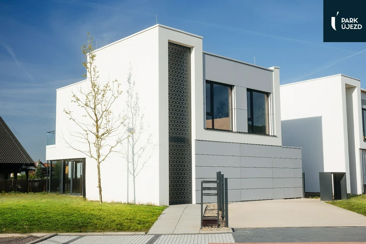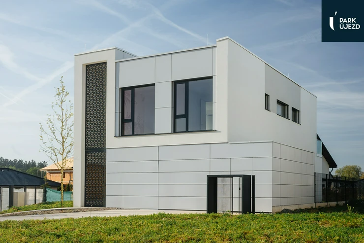 We are proud to present a newly built premium villa located at the crossroads of three remarkable natural areas: Průhonice Park, the Dendrological Garden, and the scenic meanders of the Botič stream. This exclusive address combines tranquillity with outstanding accessibility to the heart of Prague and the C-line metro station Opatov.