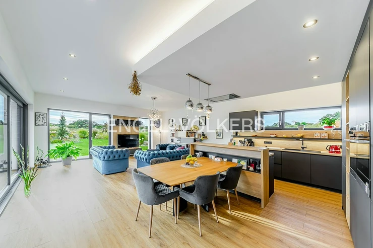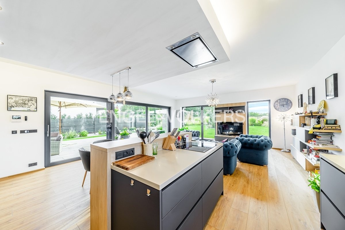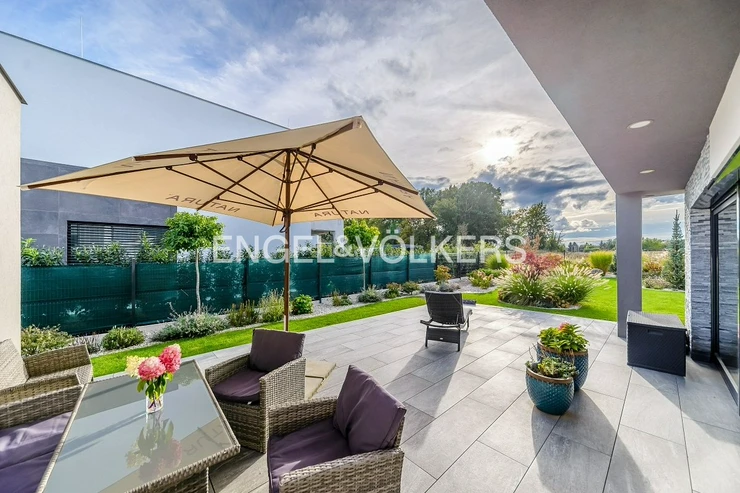 Are you looking for modern and comfortable living in a quiet location that offers not only plenty of space but also top-notch amenities? We have a unique opportunity for you to acquire a new-build family villa from 2022 in the prestigious Újezd u Průhononice district. This magnificent 5-bedroom house boasts an internal usable area of 195 sqm and is located on a plot of 723 sqm, of which 567 sqm is a well-kept garden equipped with an automatic irrigation system and an automatic mower, ensuring you have minimal worries about its maintenance.