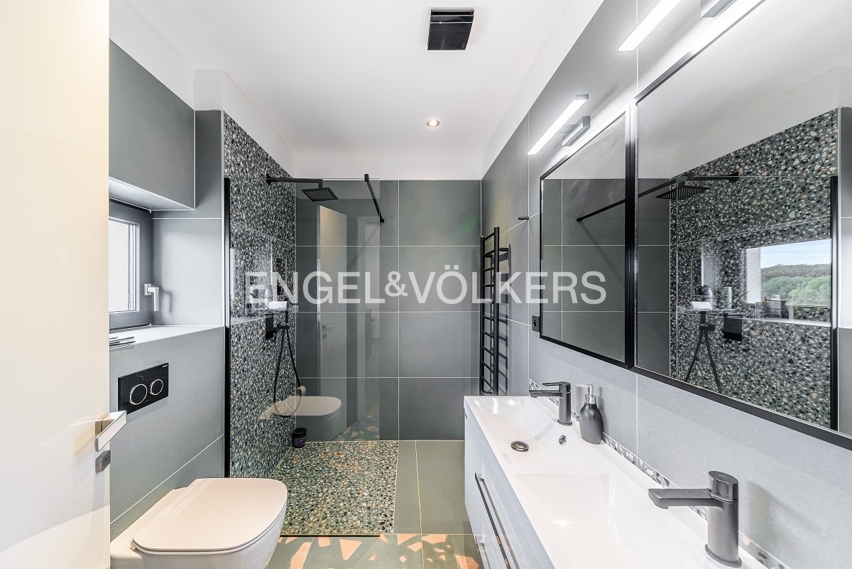 The second floor is reserved for peace and relaxation. There are two bedrooms that can serve as children's rooms or a study, and these rooms share one spacious bathroom. The master bedroom is separate and is accessed through a dressing room, while it has its own bathroom, ensuring maximum comfort and privacy. In addition, one of the rooms has access to the terrace, which is located above the garage and offers an ideal place to relax.