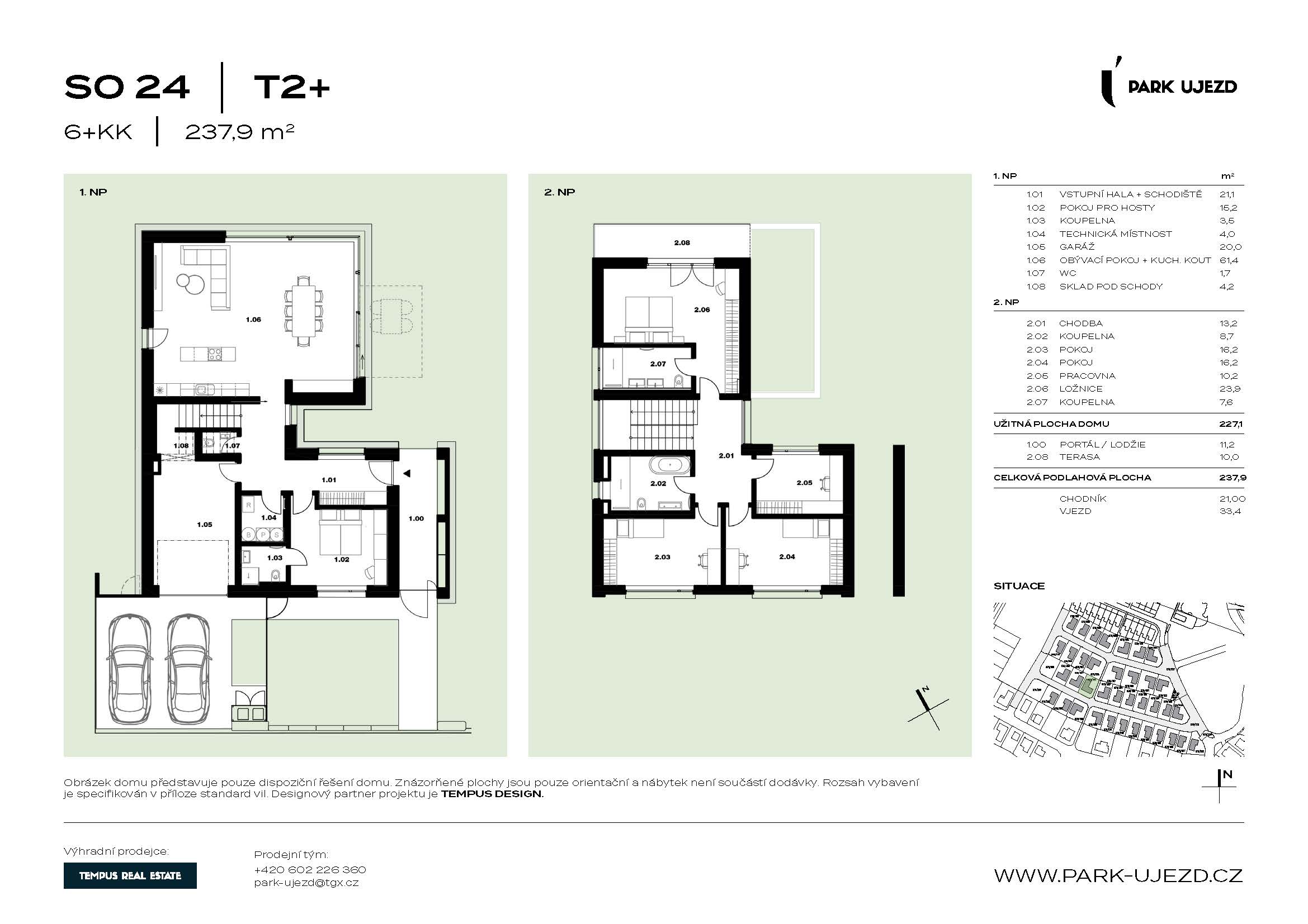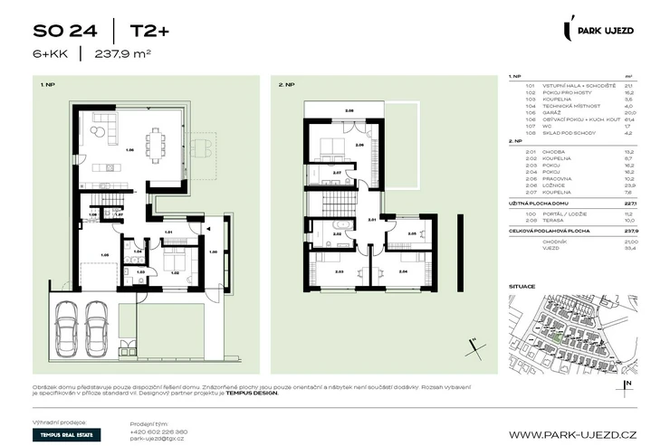 We are proud to present a stunning villa in the prestigious Park Újezd development, offering a generous 6-room layout with kitchenette (6+kk) and a total living area of 227 m² – designed to provide maximum comfort and space for your entire family.
